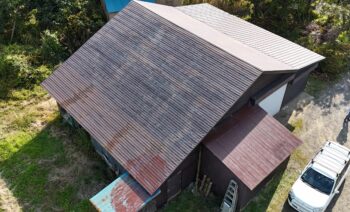青森県上北郡野辺地町で小屋の「屋根塗替工事」を着工致しました!