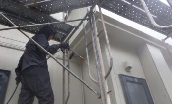 青森県上北郡野辺地町の全面改装工事で「高圧洗浄」から作業着工中です!