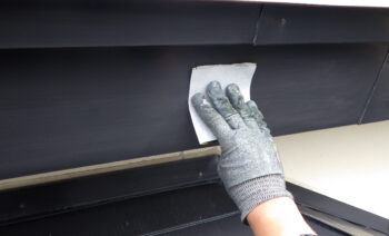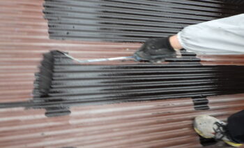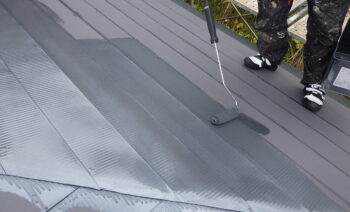 青森県上北郡野辺地町での「全面改装工事」で屋根部の上塗施工中です!