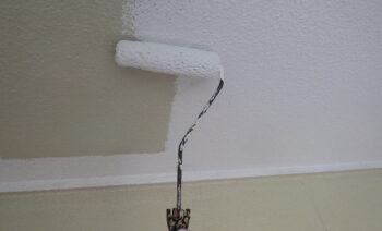 青森県上北郡野辺地町での「全面改装工事」で『軒天井専用塗料』を使用して軒天井施工中です!