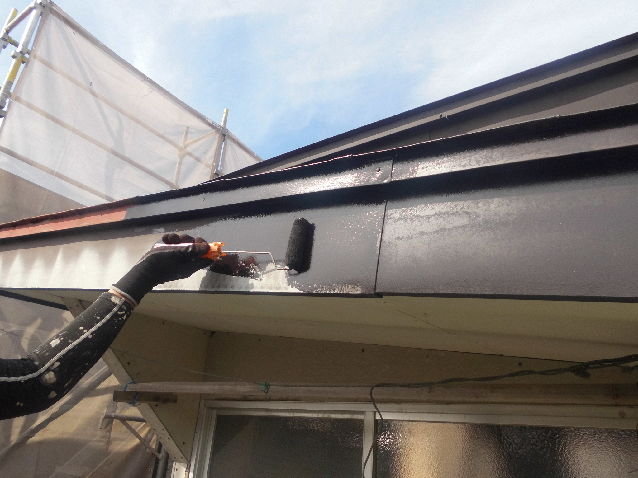 細かい部分を先行して刷毛で「ダメ込み」してから、ローラーできれいに塗り進めていきます。