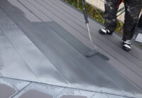下地処理完了後、屋根部の「下塗」を施工していきます。