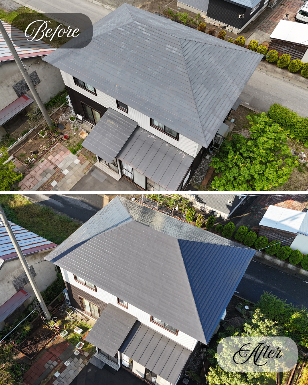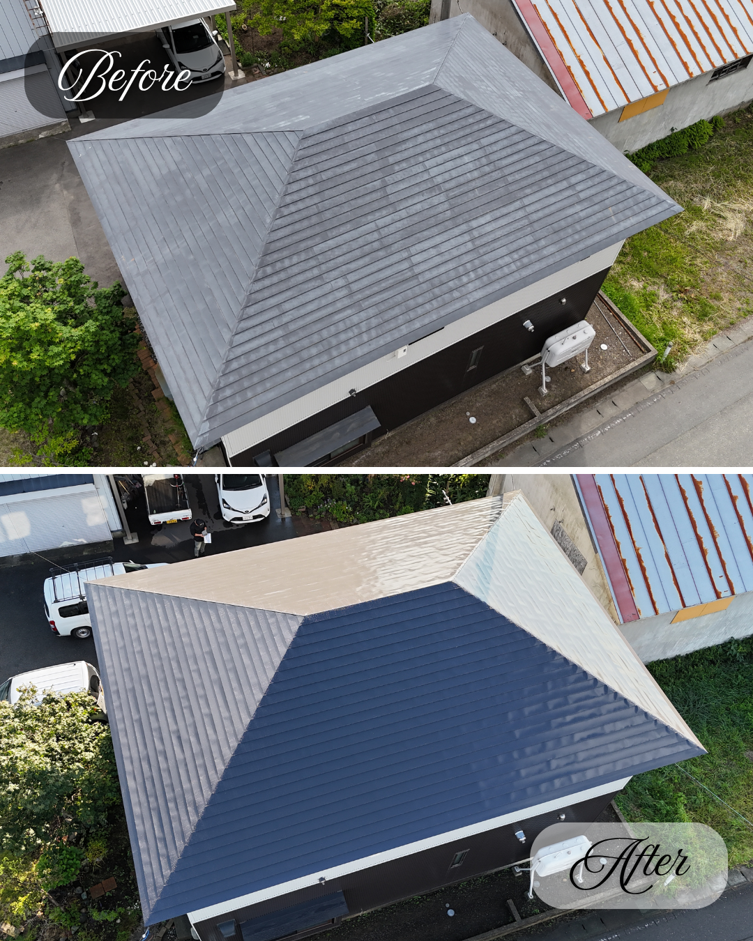 艶が退いて傷んでいた屋根がきれいによみがえりました。