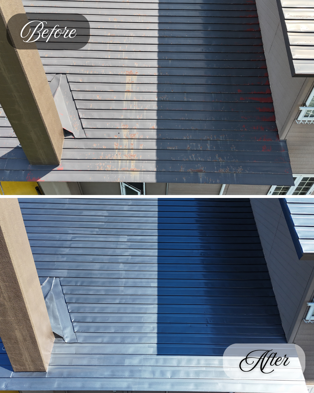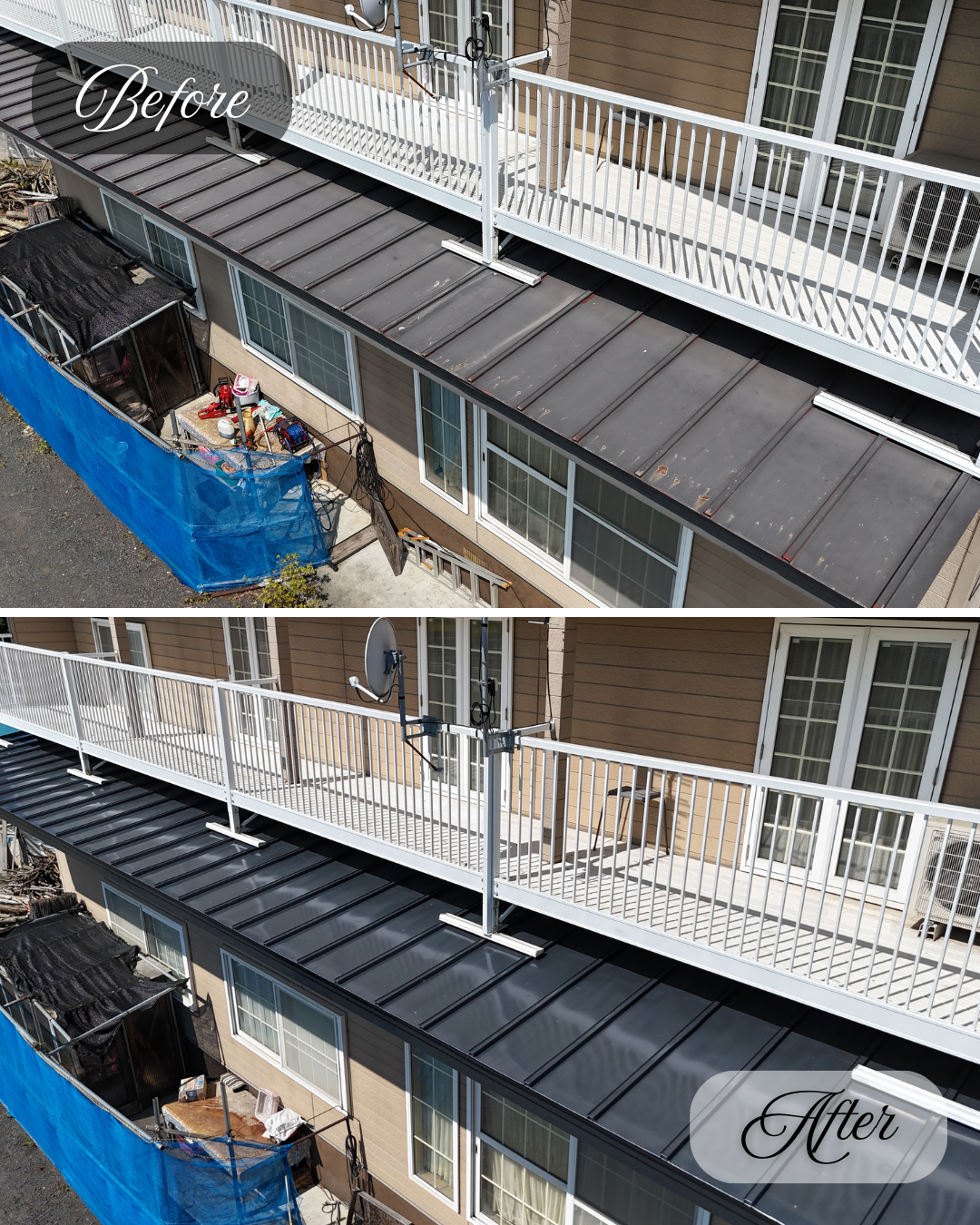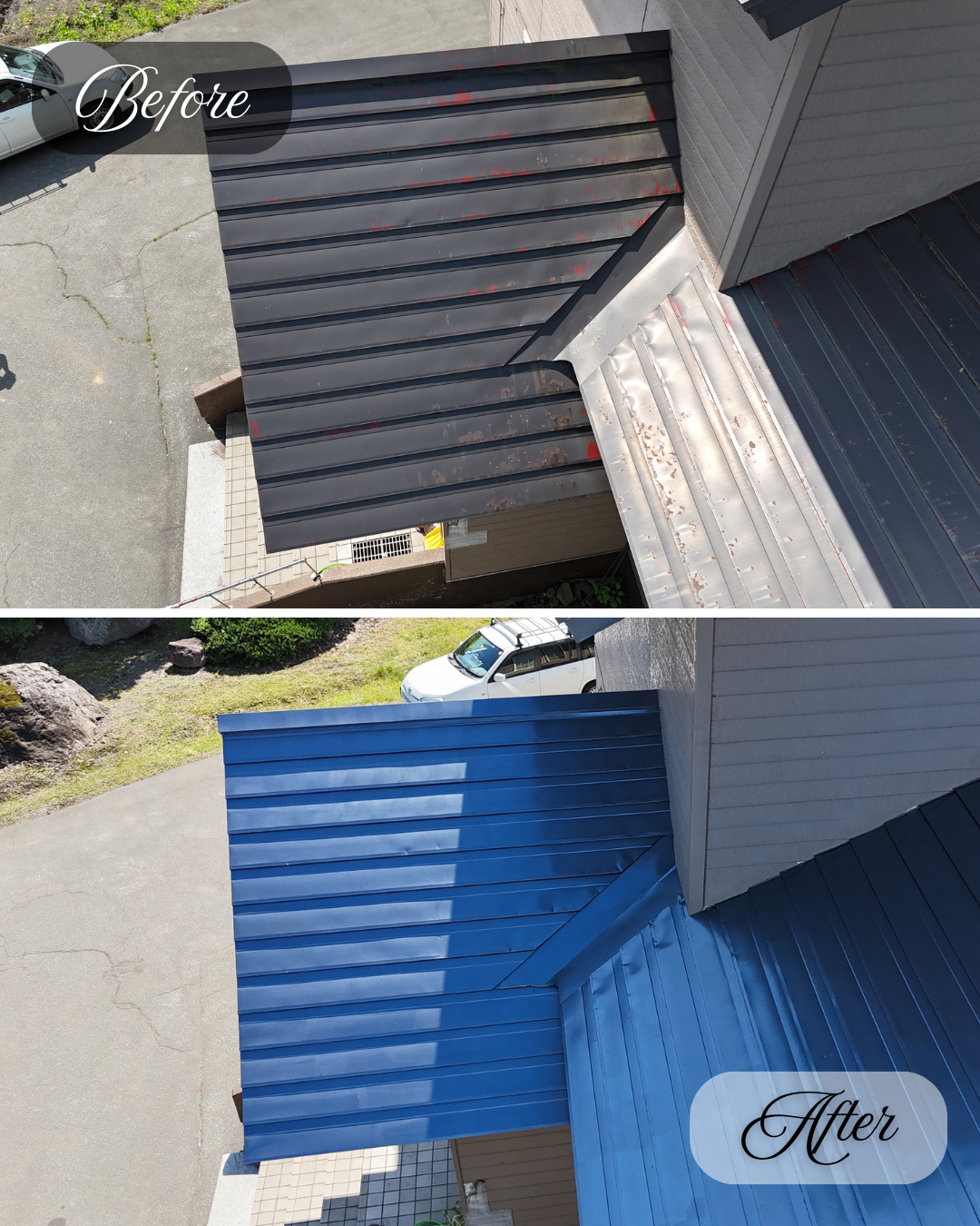 錆の発生や旧塗膜のハガレが全体的に見受けられた屋根が、きれいによみがえりました。