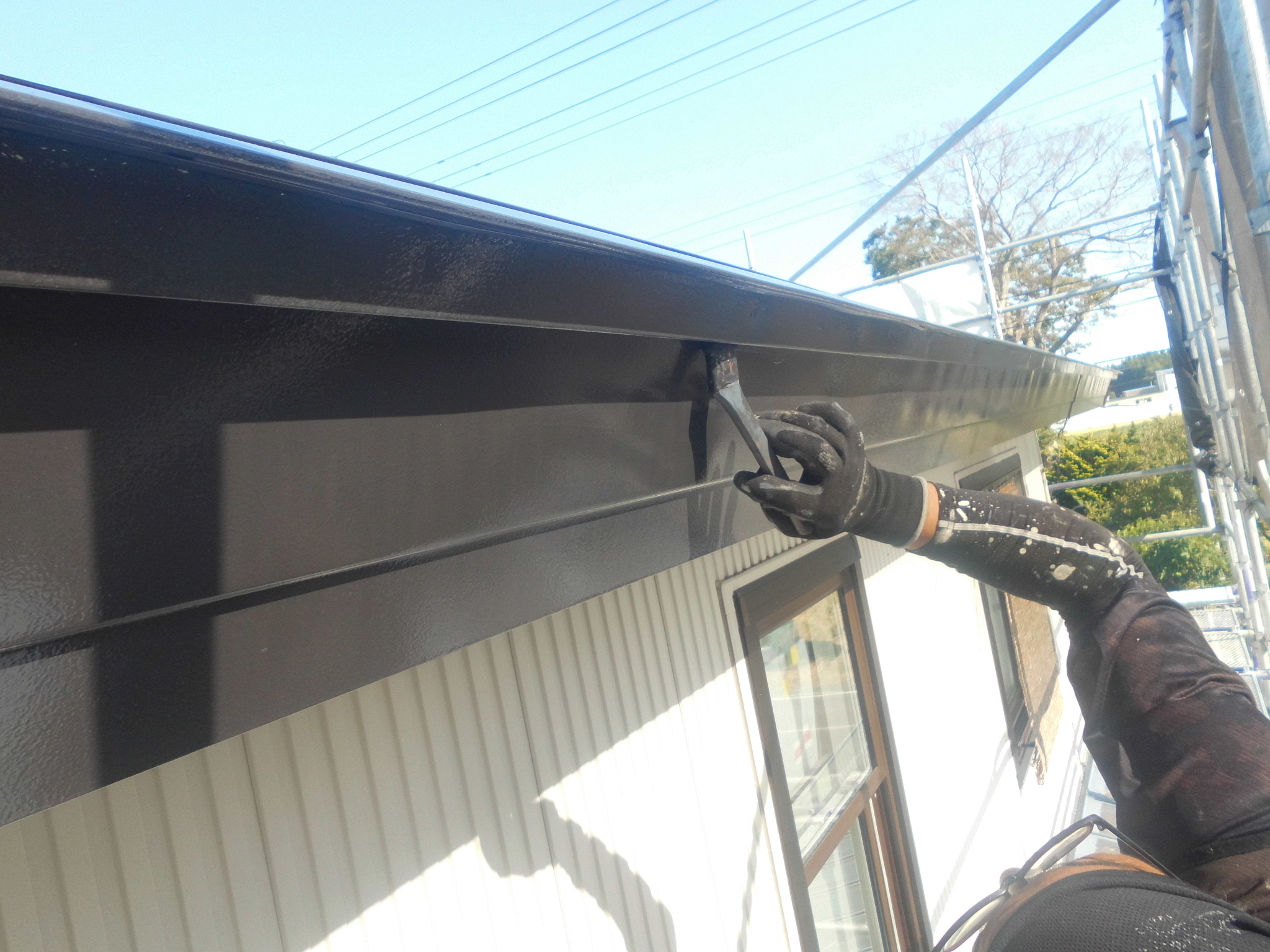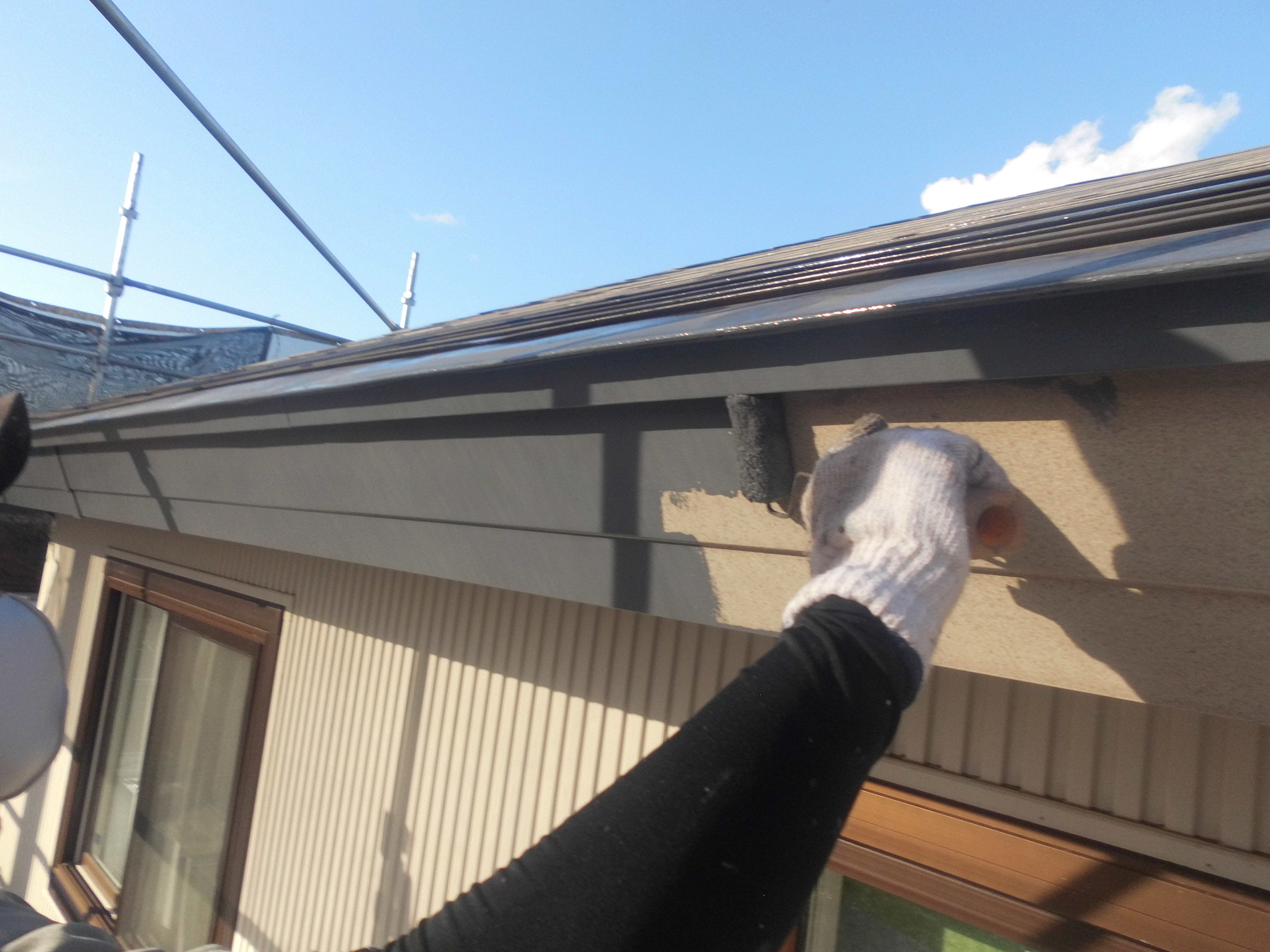 細かい部分は刷毛で「ダメ込み」を行ってから、ローラーで塗り進めていきます。