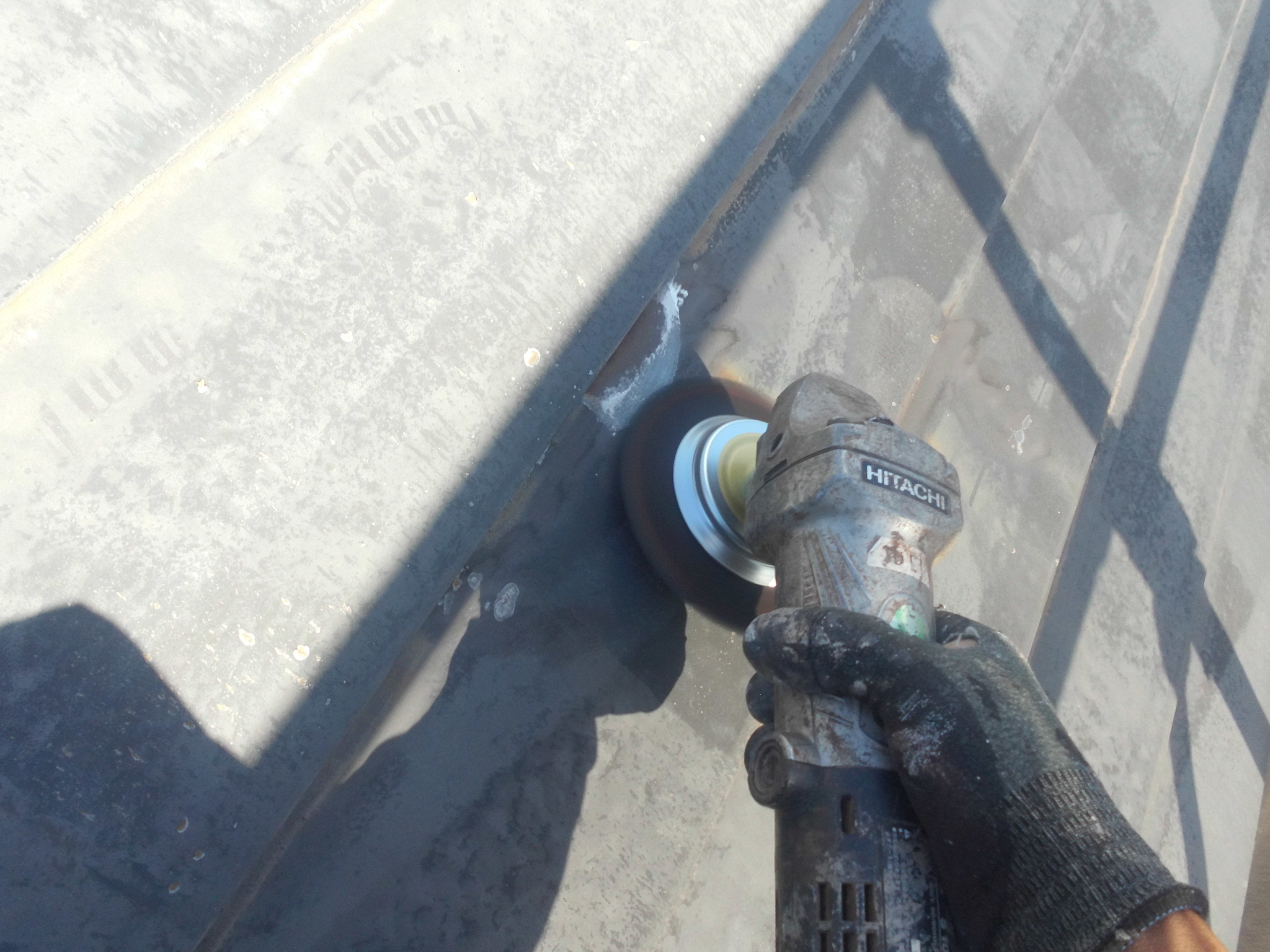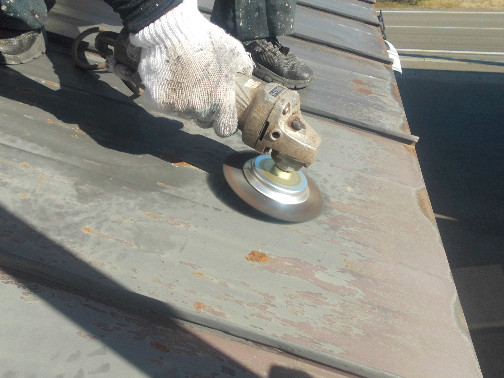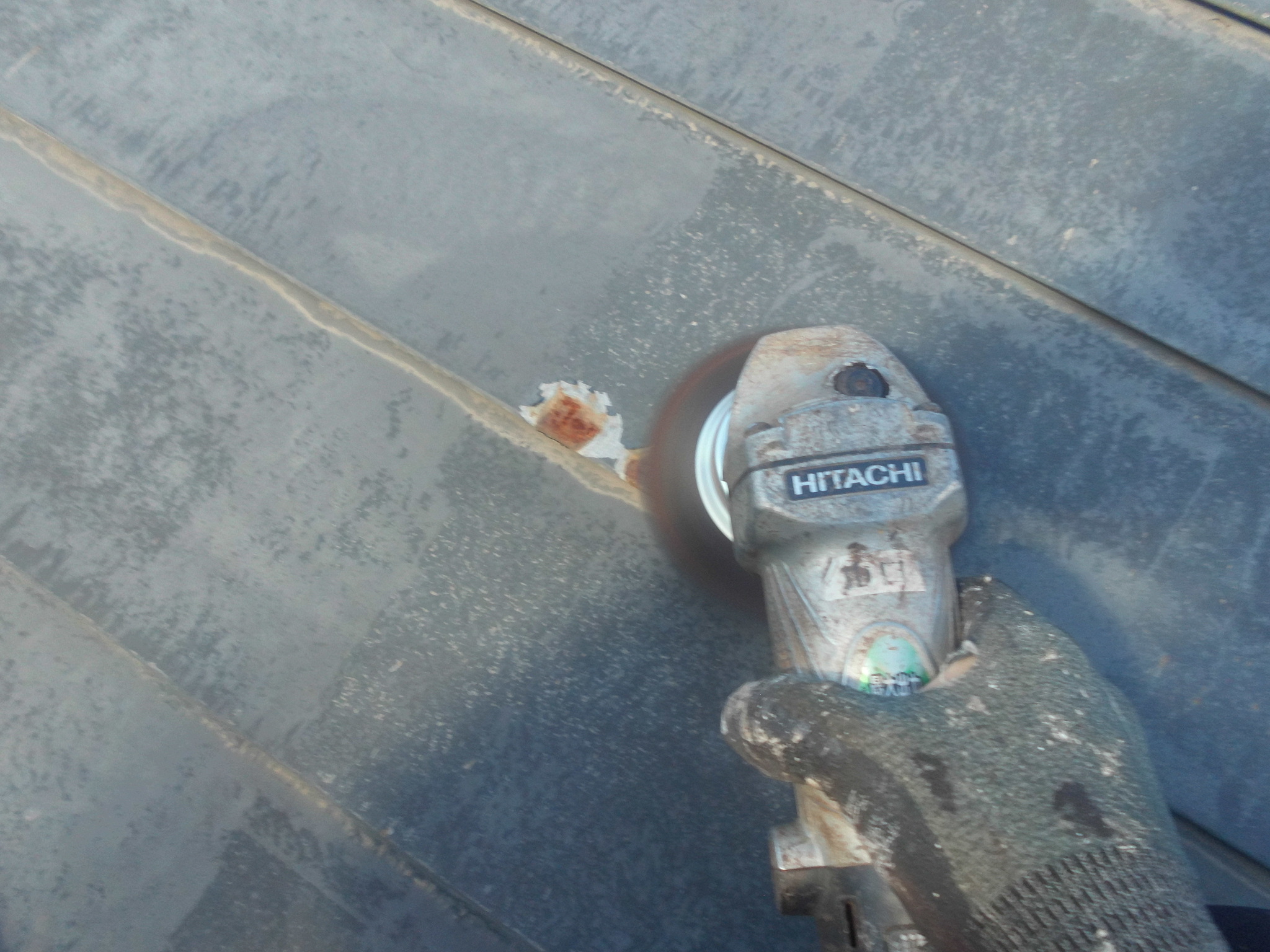 錆発生部分をディスクサンダーでケレン作業を行っていきます。