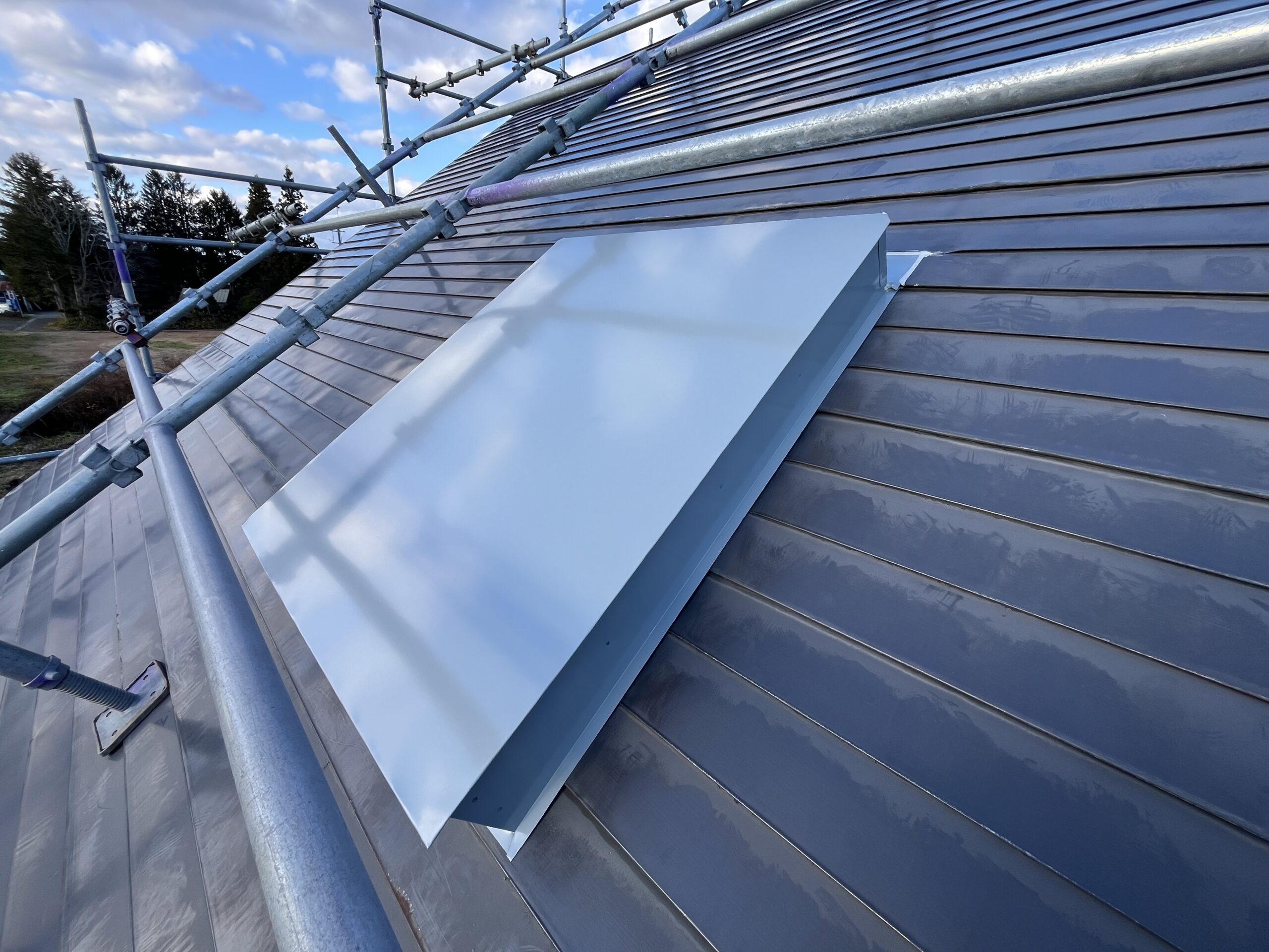 お施主様から「トップライト」を塞いでほしいというご要望を受け、板金工事でカバー施工を行いました。