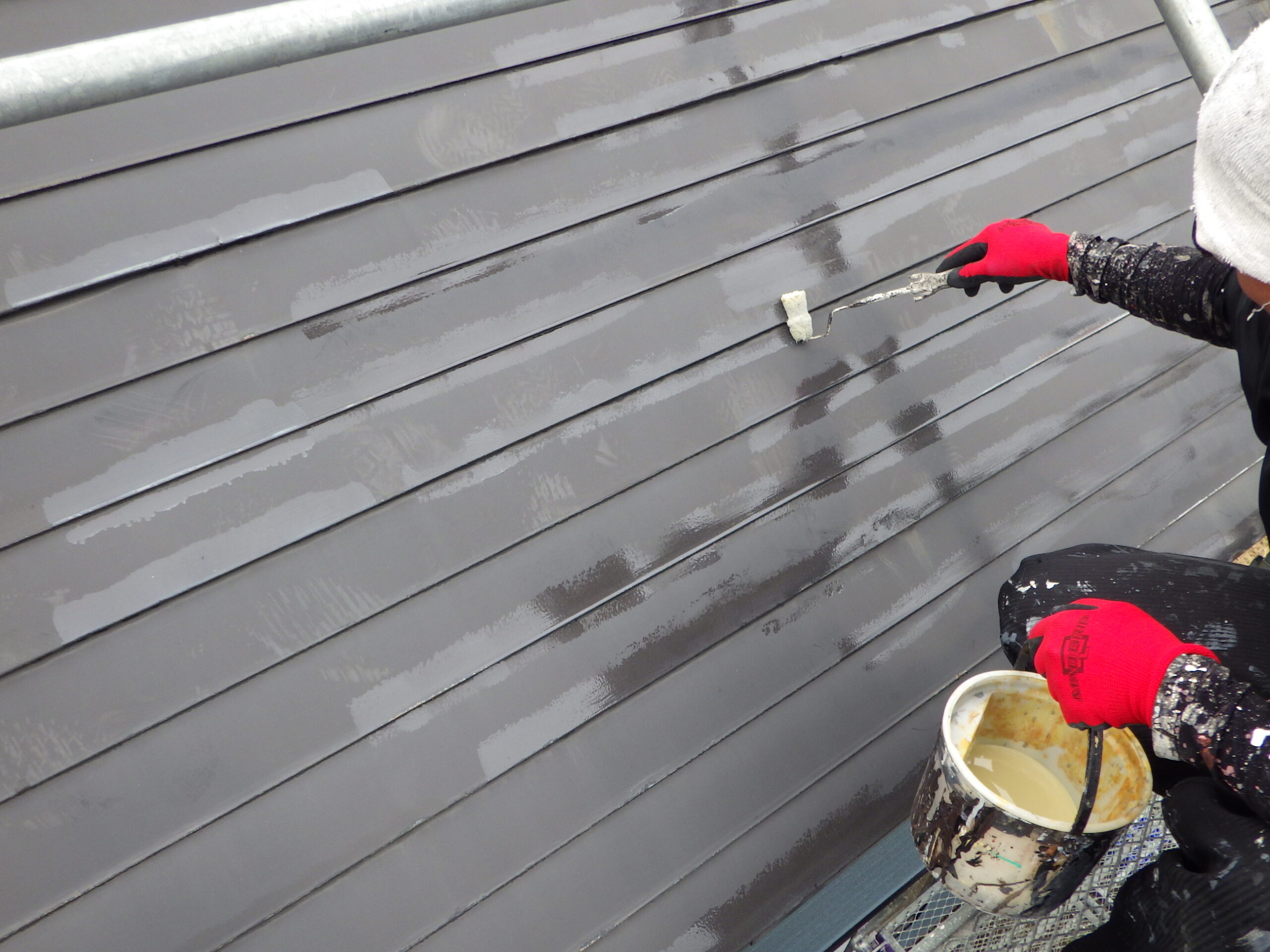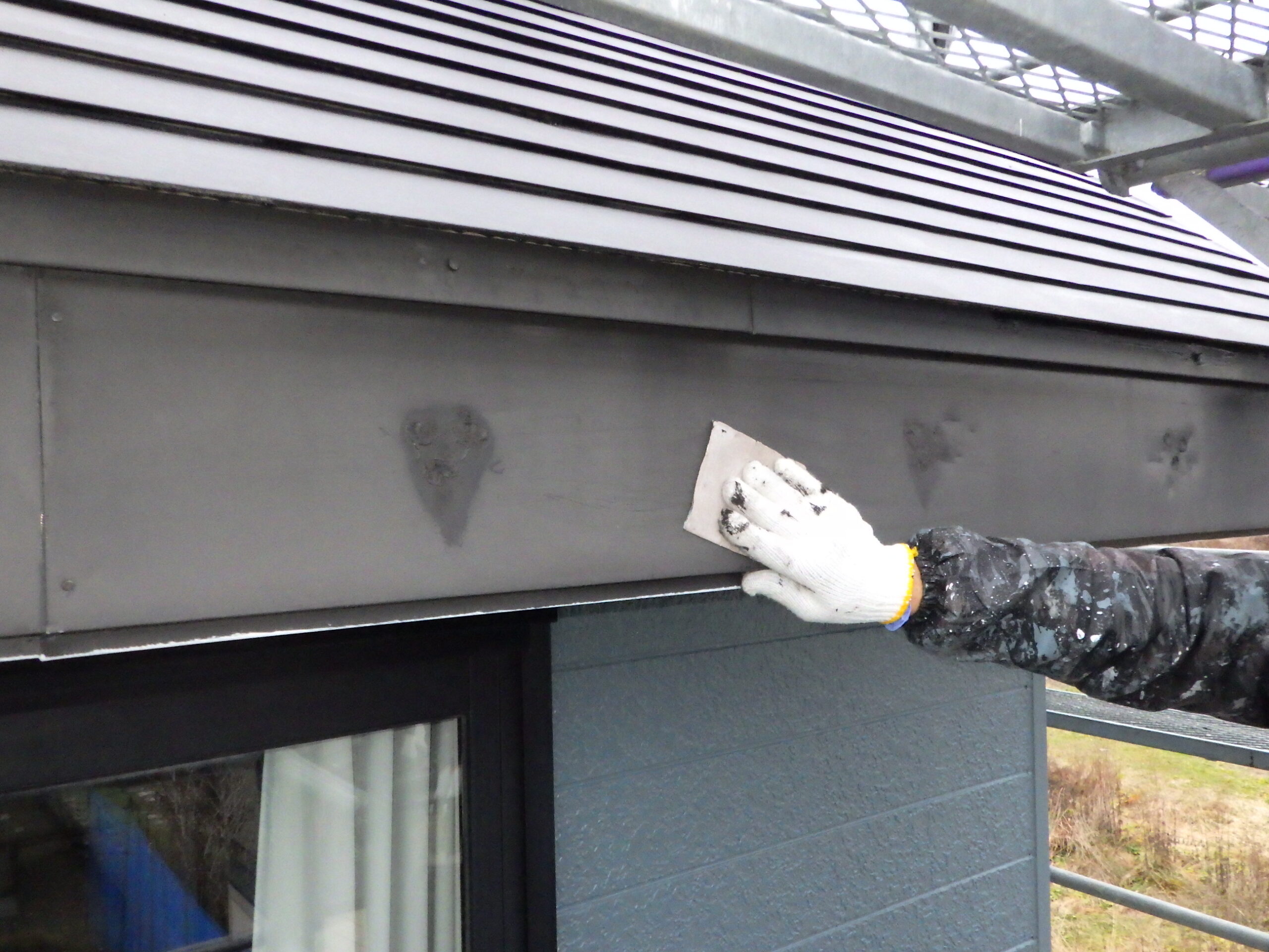 板金工事後、屋根部の「下地処理」から作業を進めていきます。