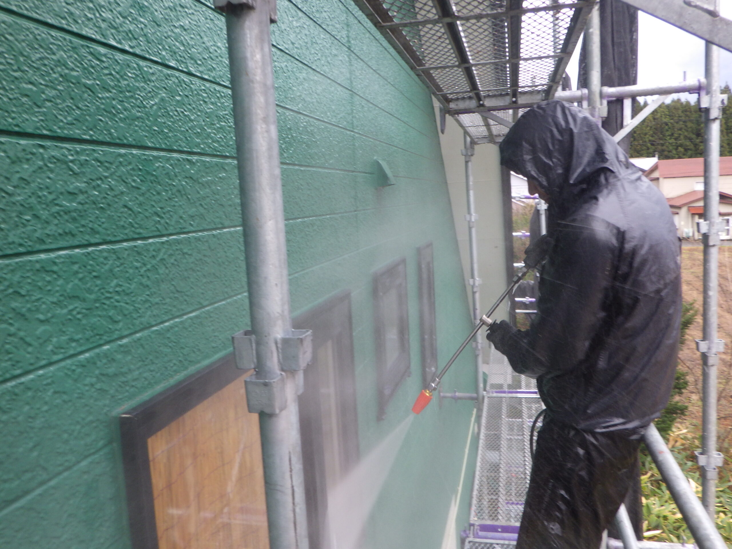 青森県上北郡七戸町の「全面改装工事」で高圧洗浄・下地処理から作業着工中です!