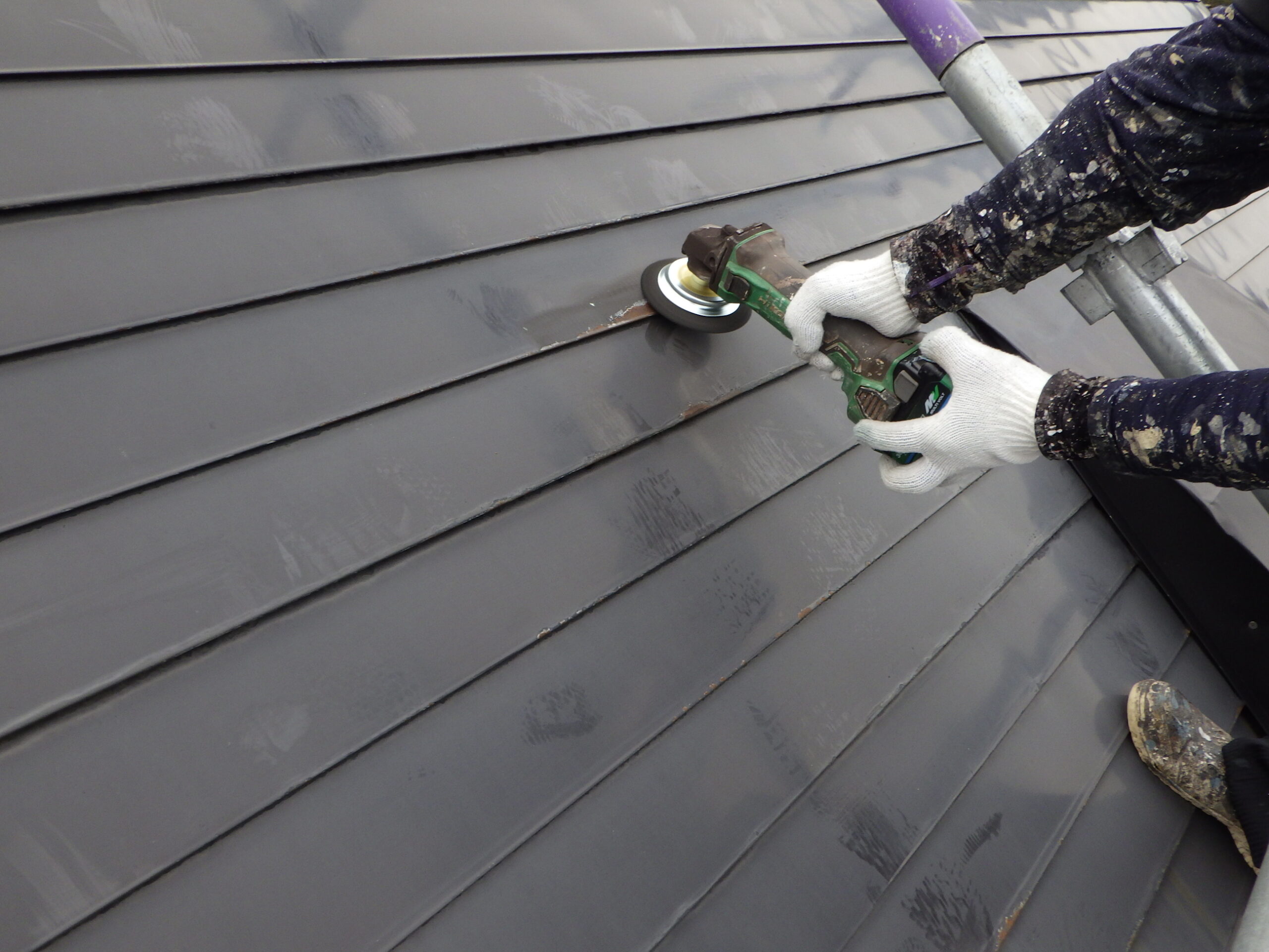 錆びた部分を削って、素地の状態にすることで下塗材の「密着性向上」が図れ、塗膜本来の性能を発揮させることができます。