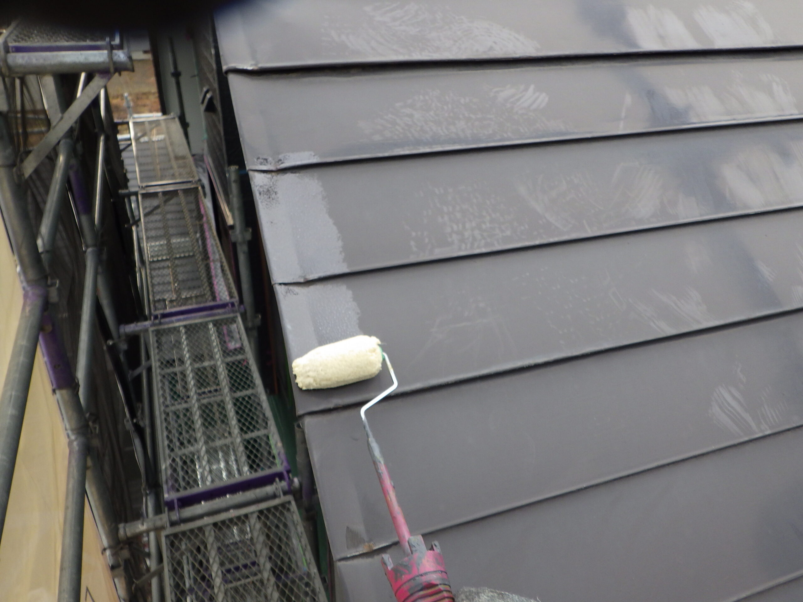 板金工事後、屋根部の「下地処理」から作業を進めていきます。