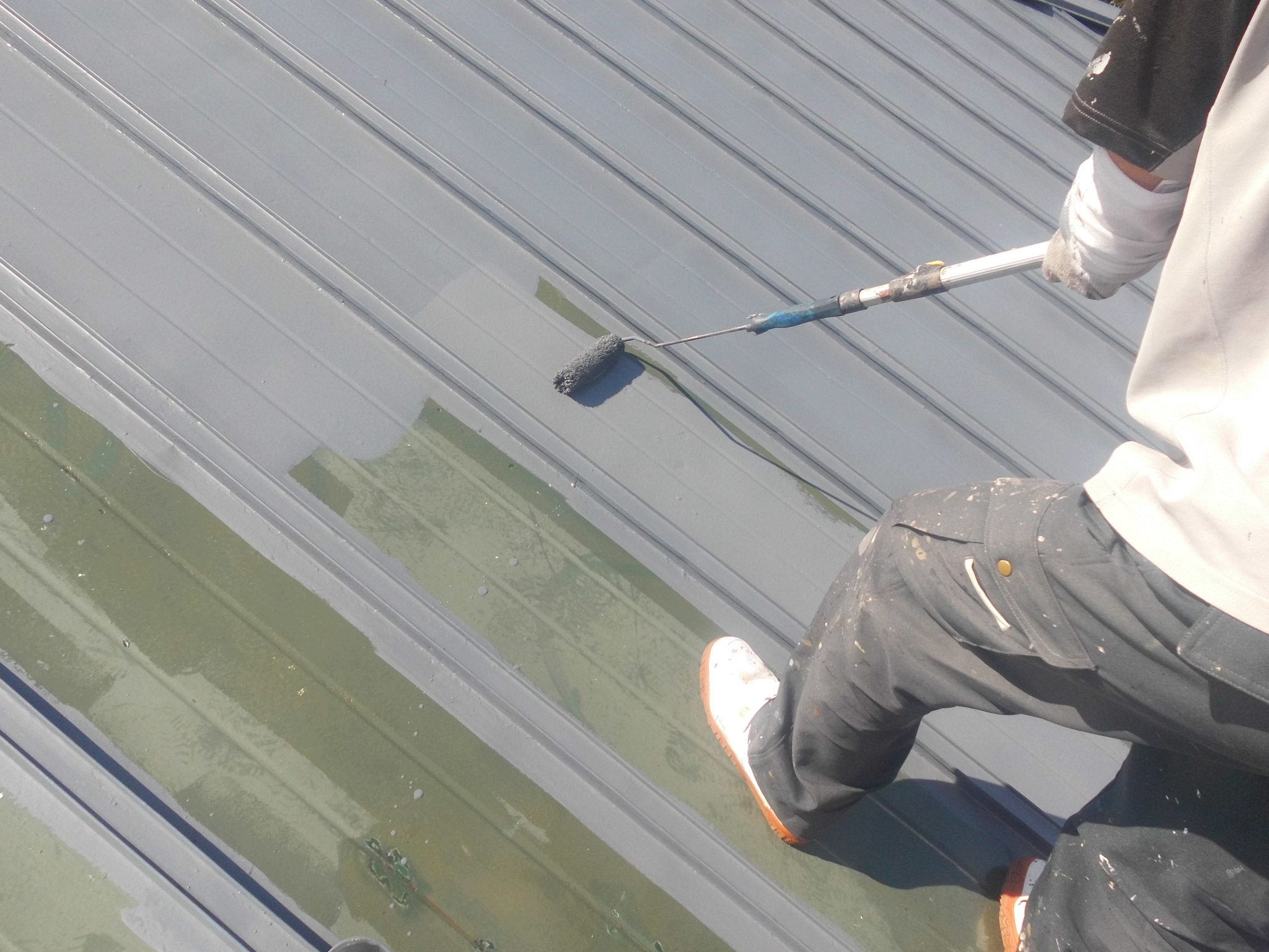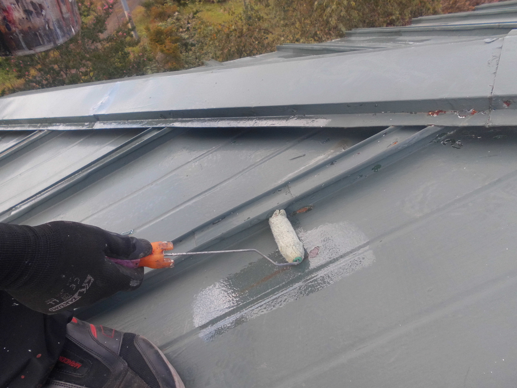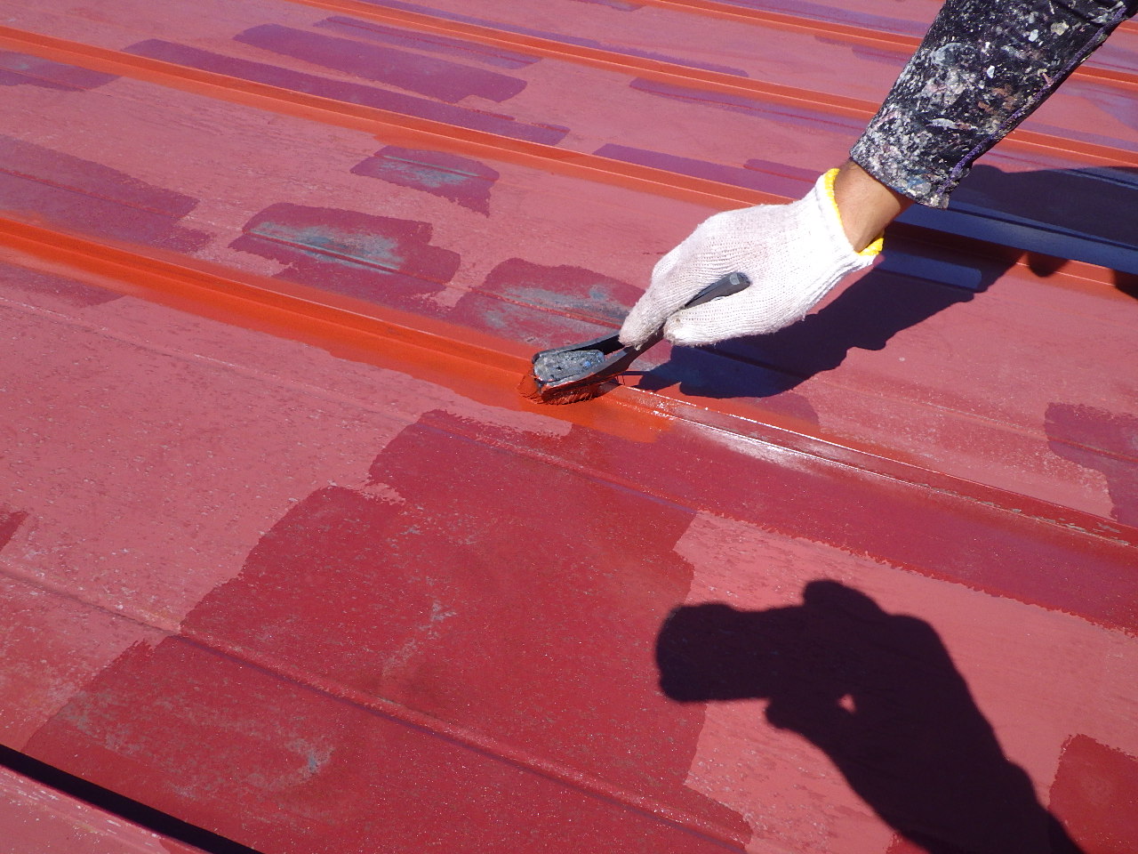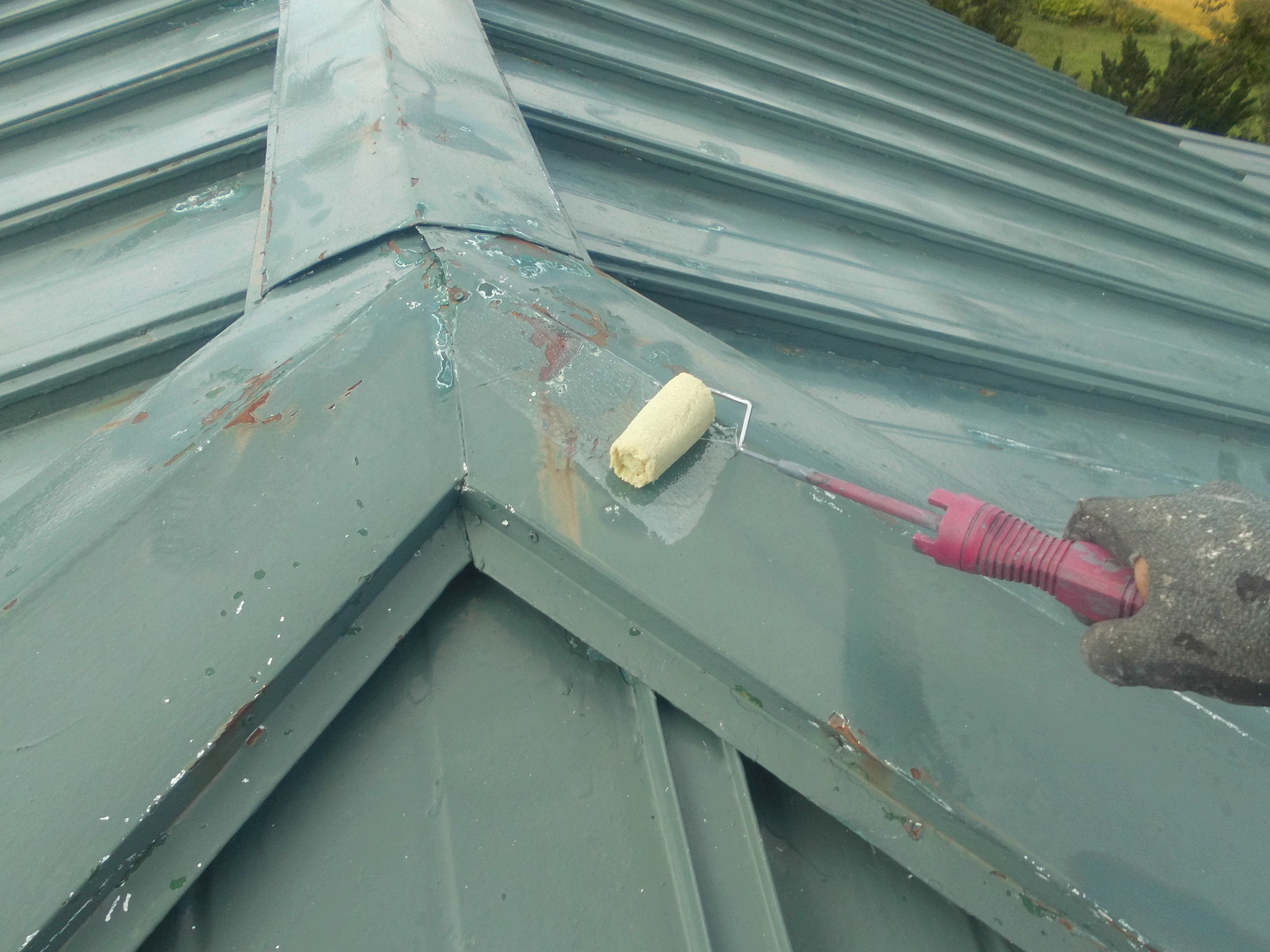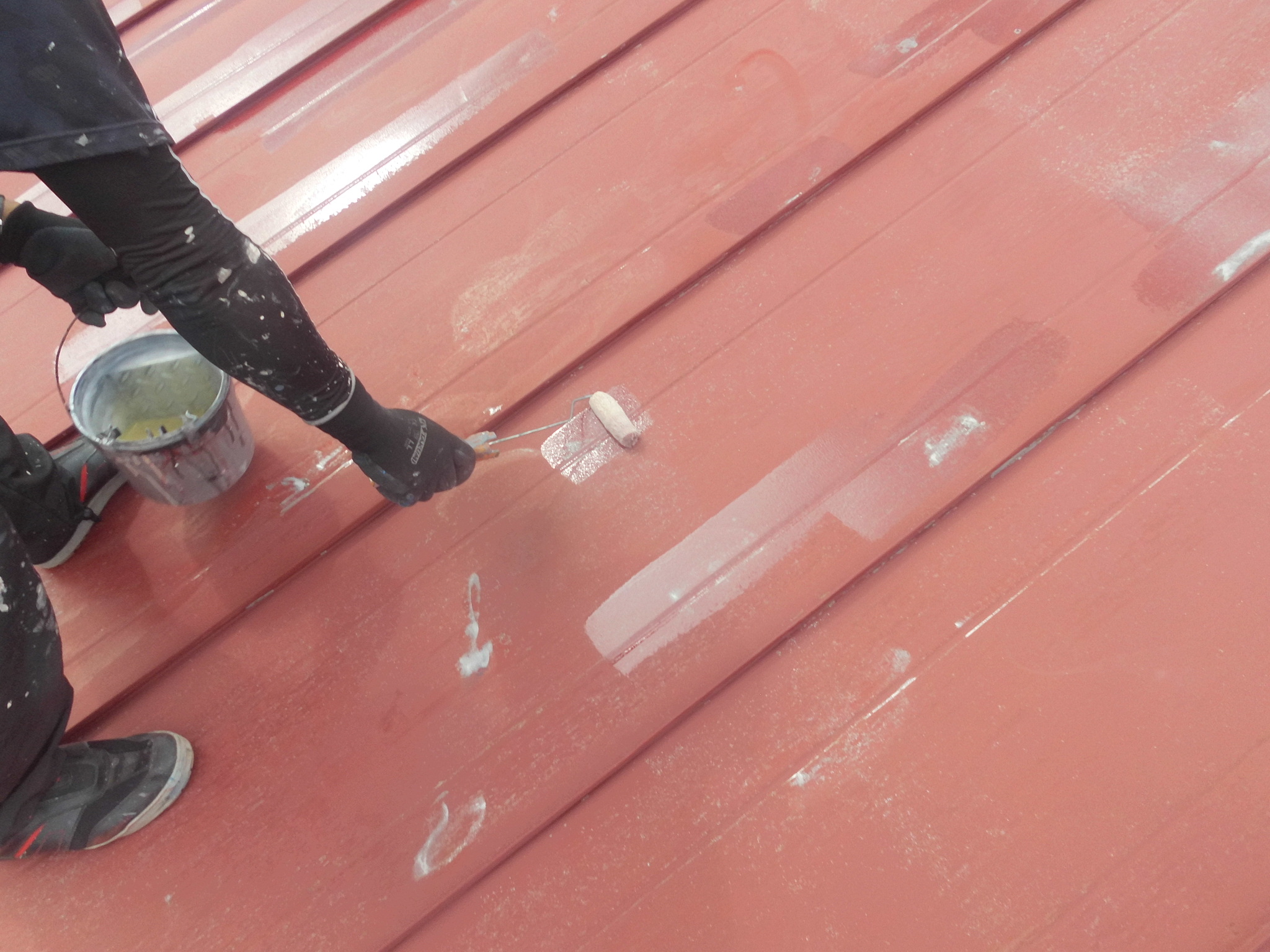 下地処理完了後、錆の発生部に先行下塗材を塗布していきます。