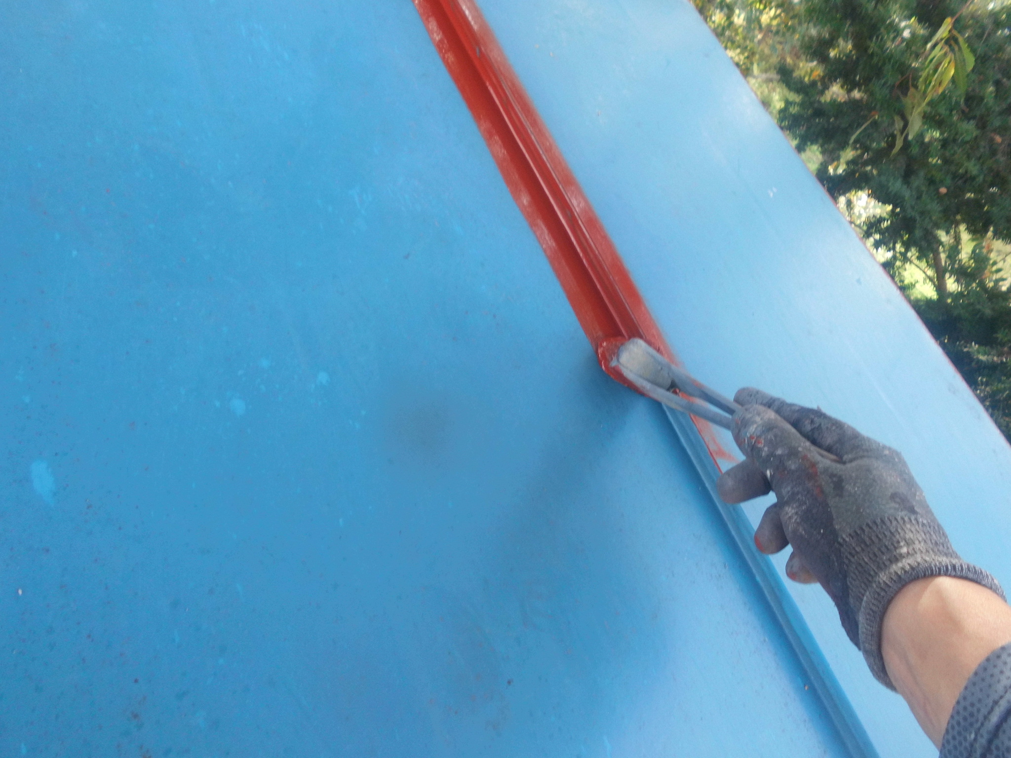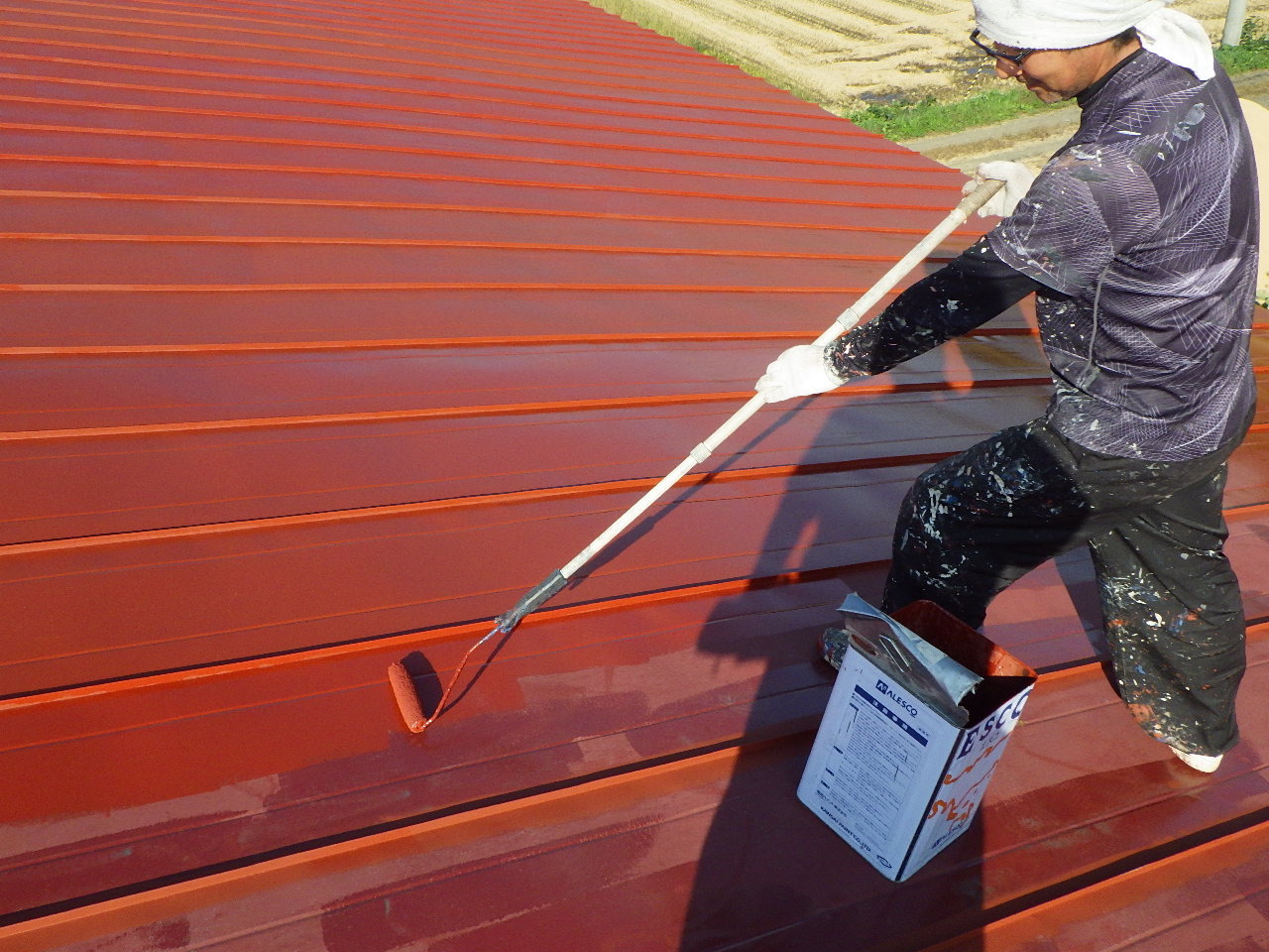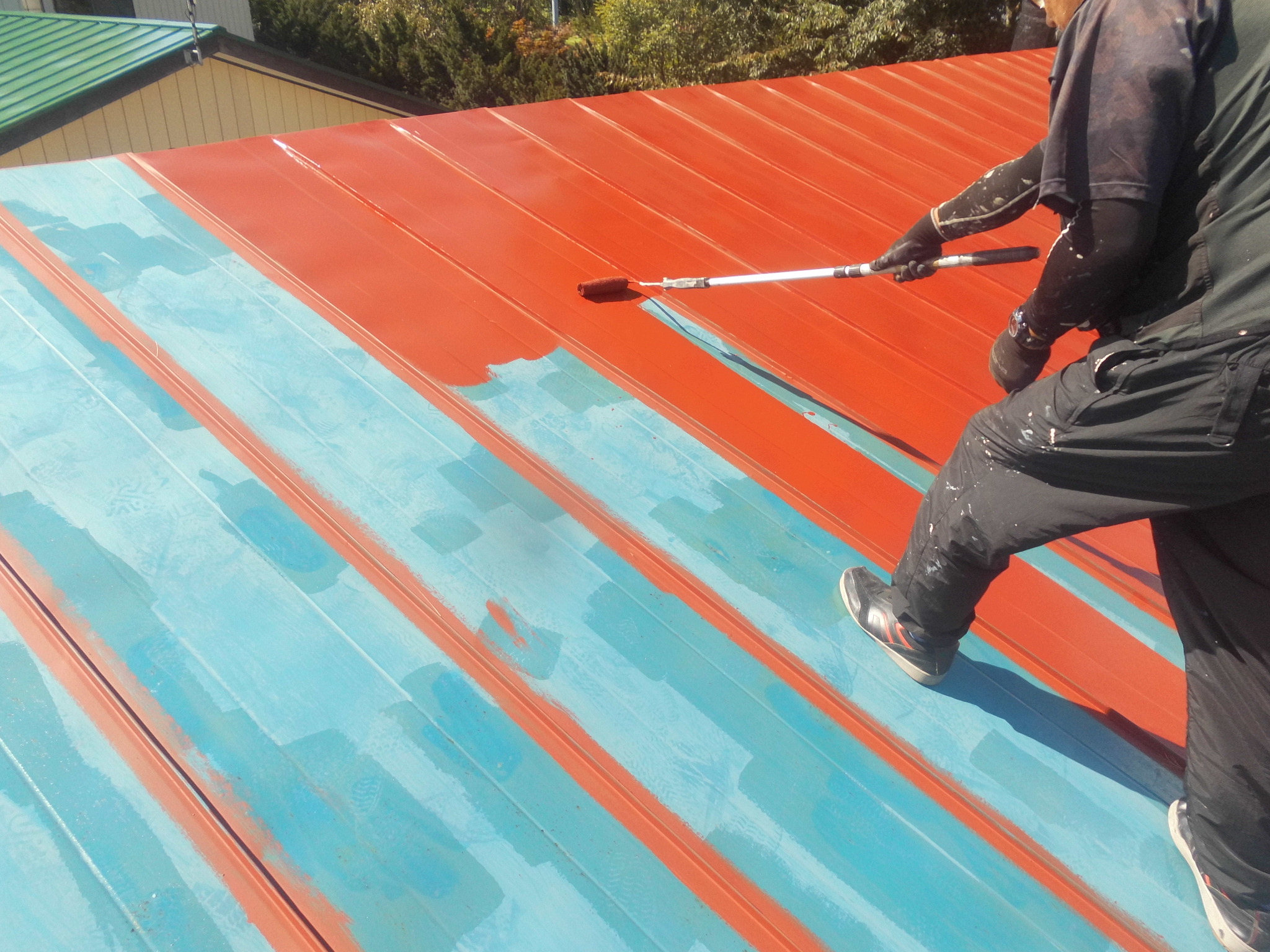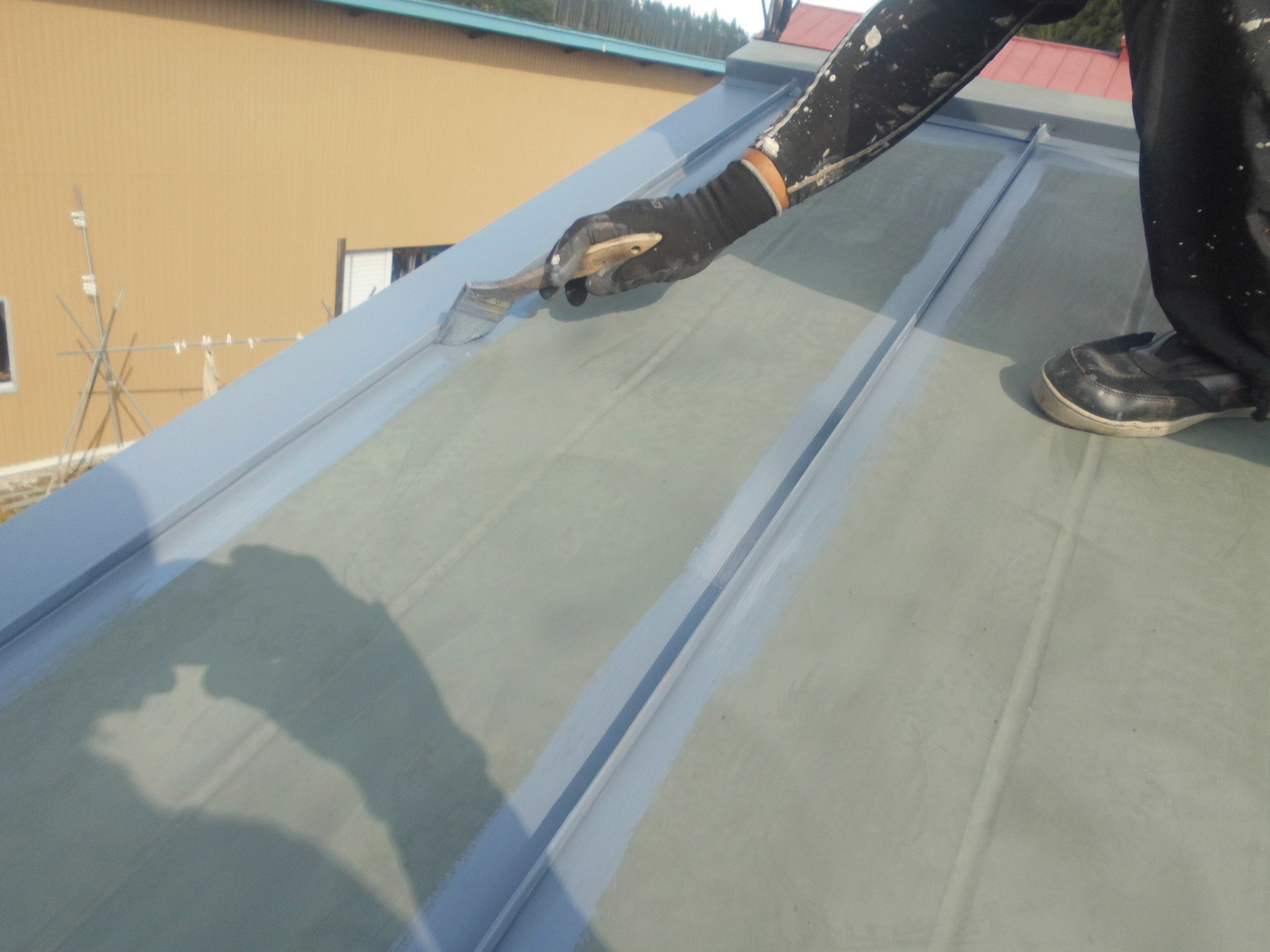 青森県上北郡七戸町の「屋根塗替工事」で「サビシャット」での「先行下塗」施工中です!
