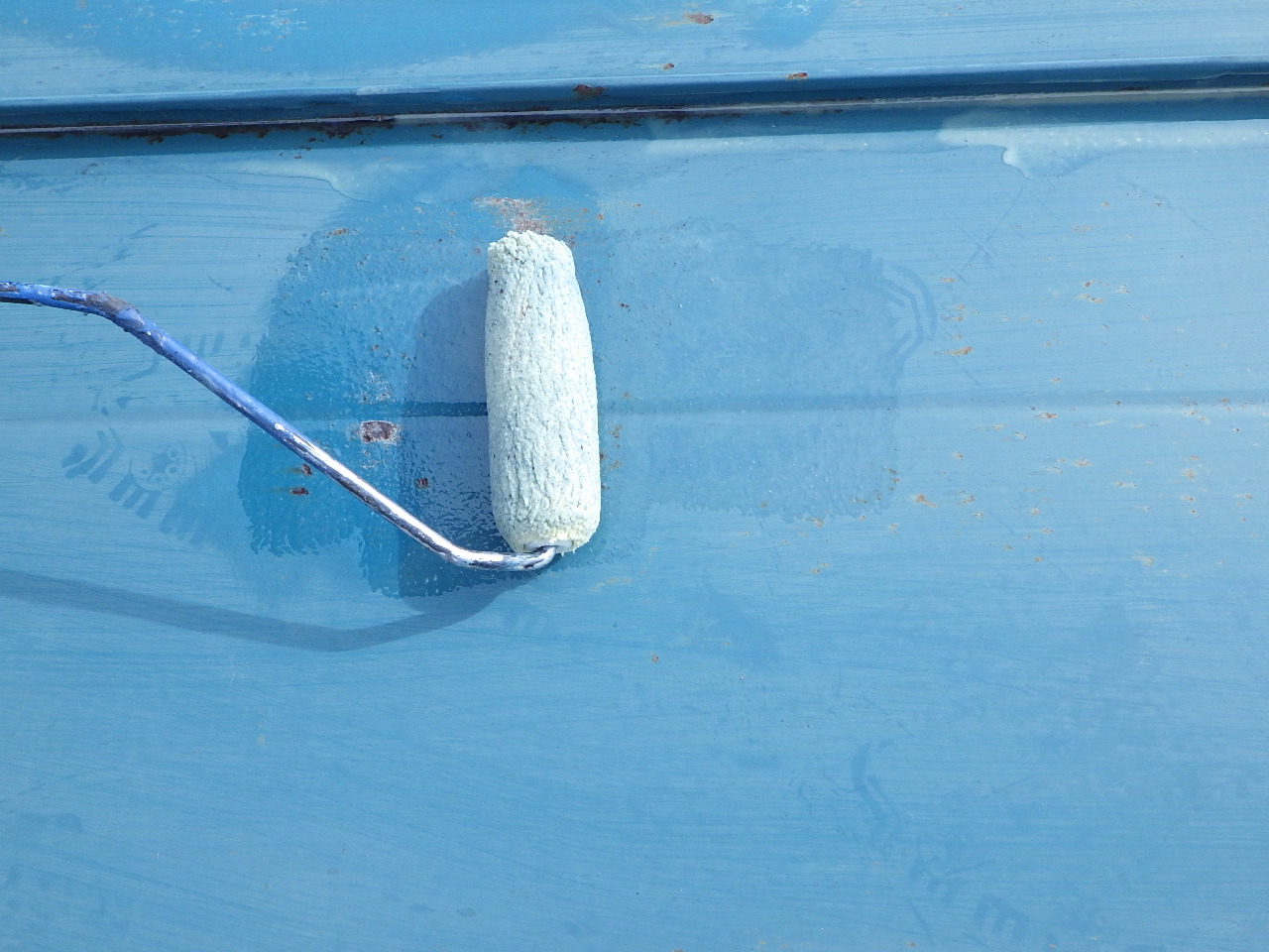 各所、細かい部分は刷毛で「ダメ込み」を行ってからローラーで仕上げていきます。
