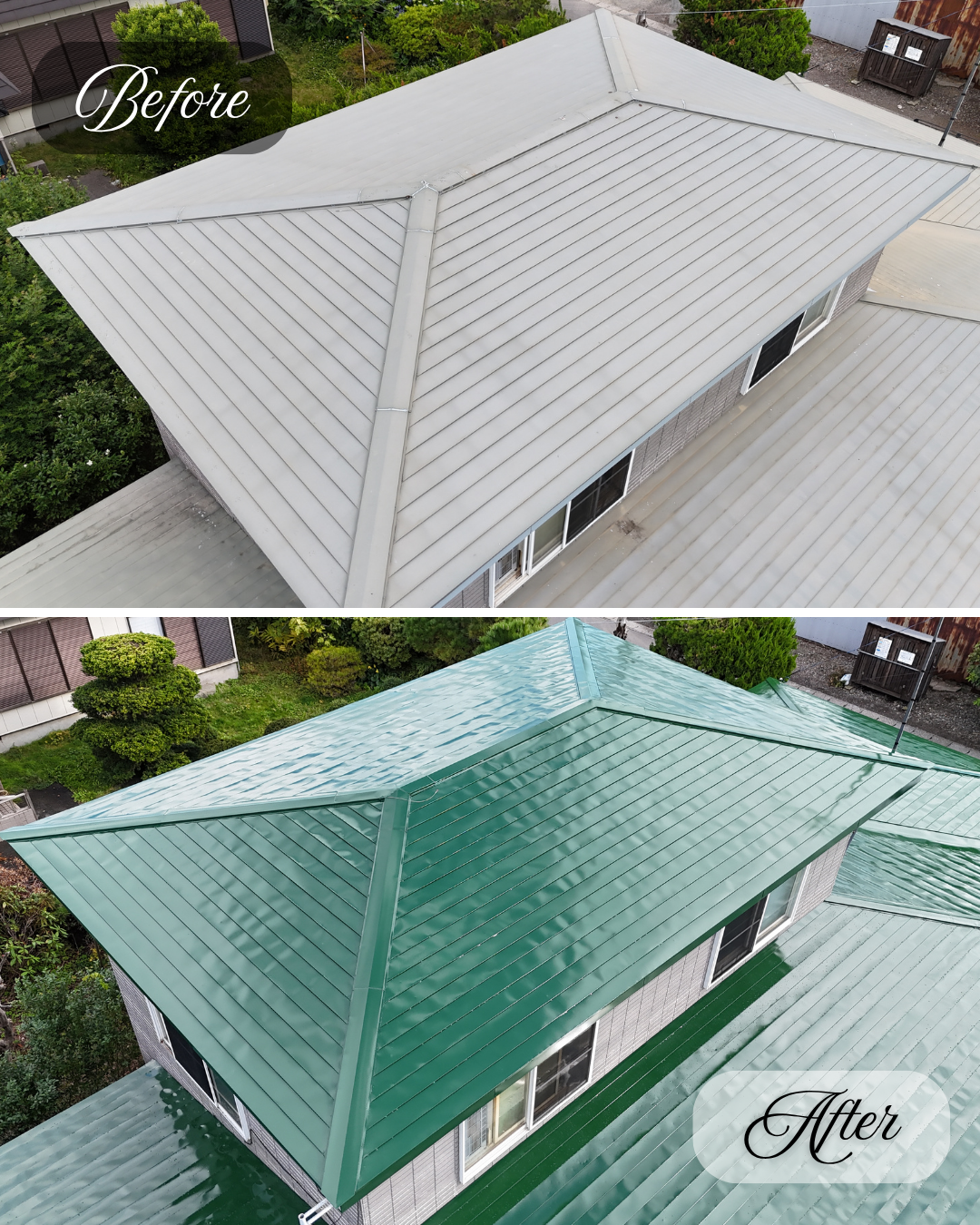 色が褪めて傷んでいたトタンがきれいによみがえりました。