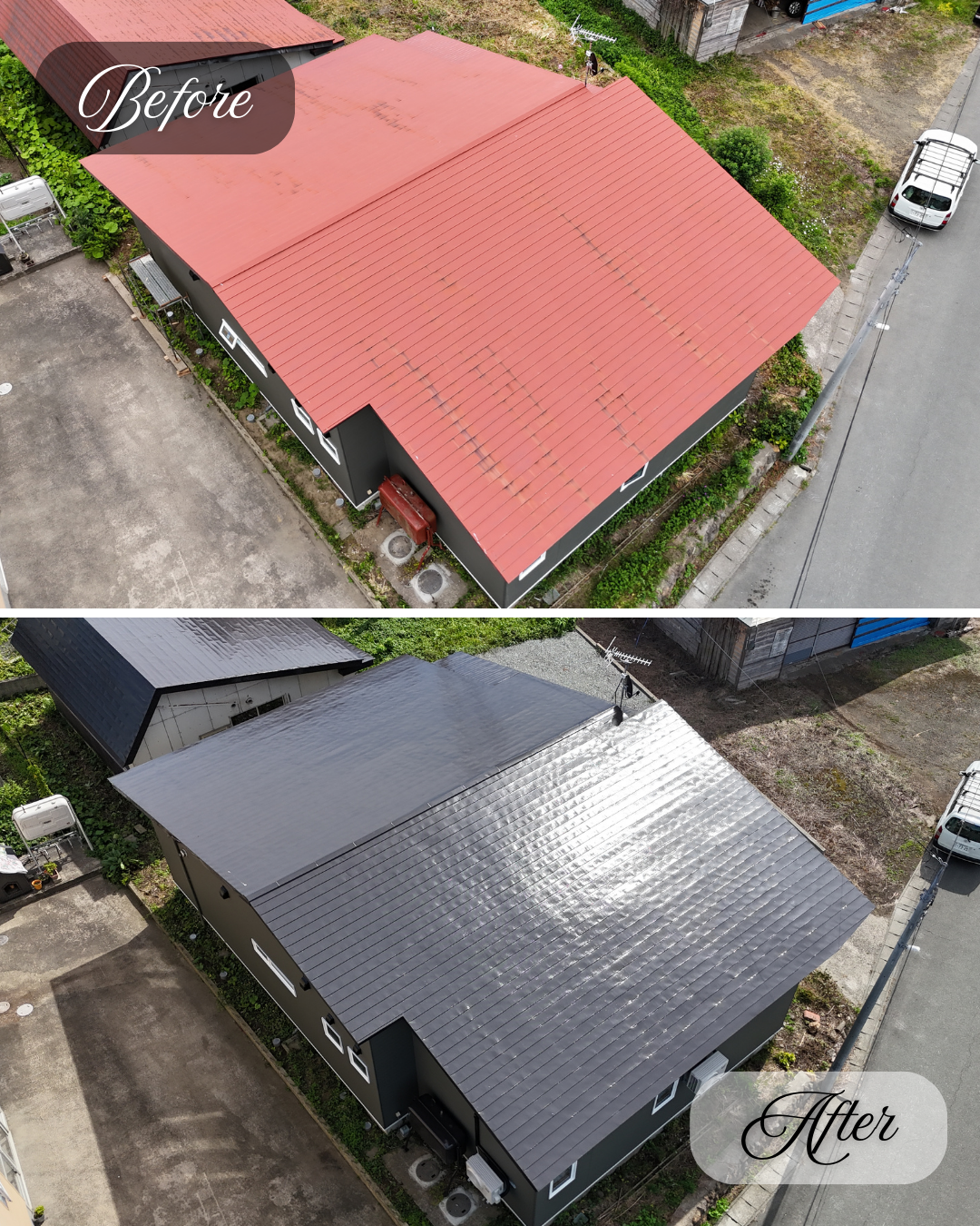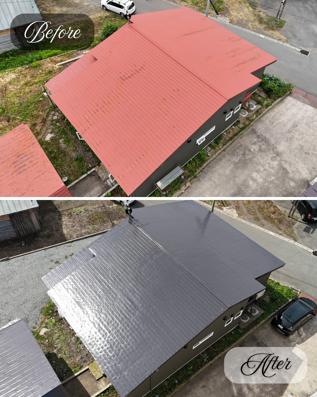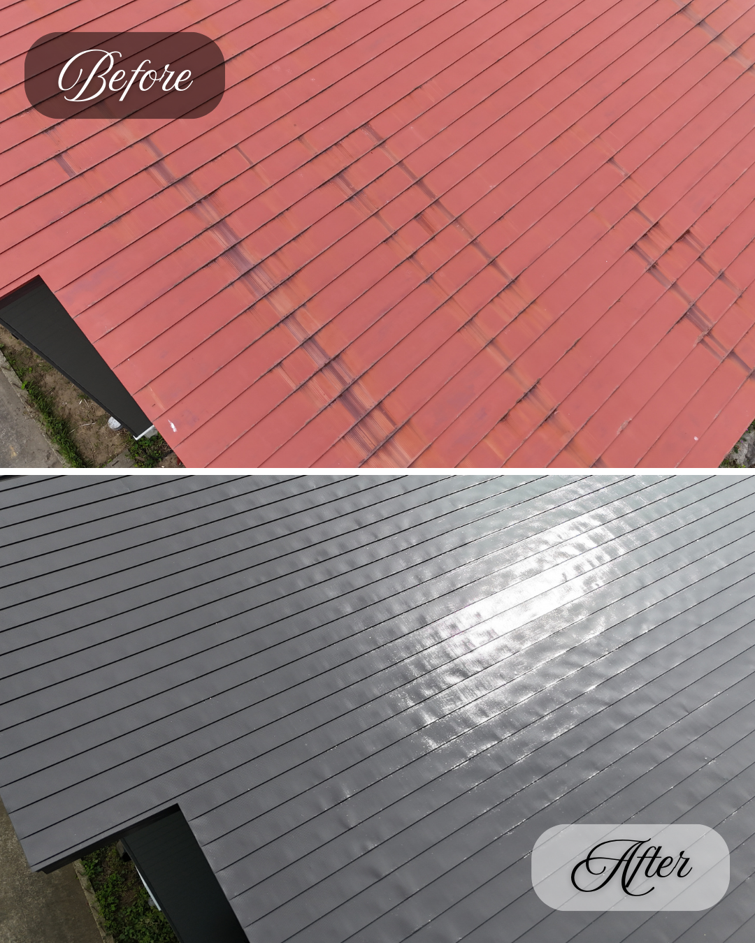 錆が発生し、艶退けも進んで傷んでいた屋根がきれいによみがえりました。