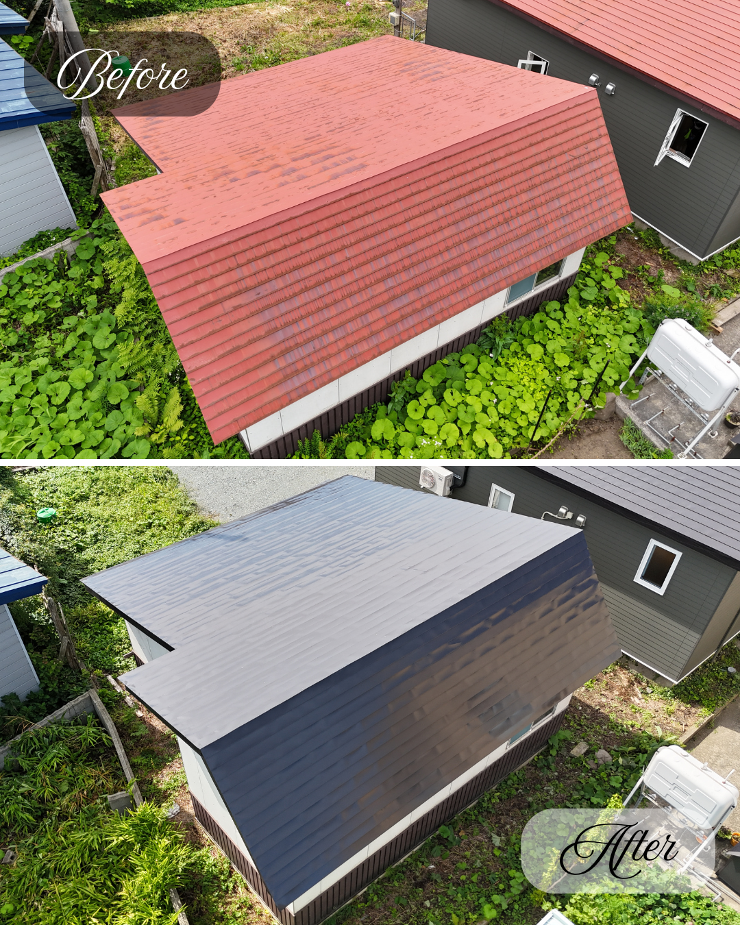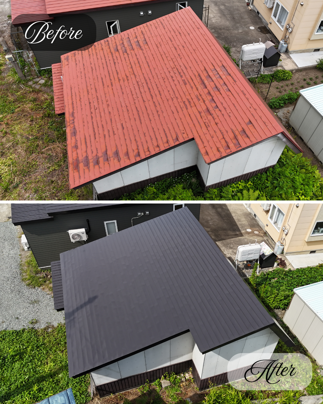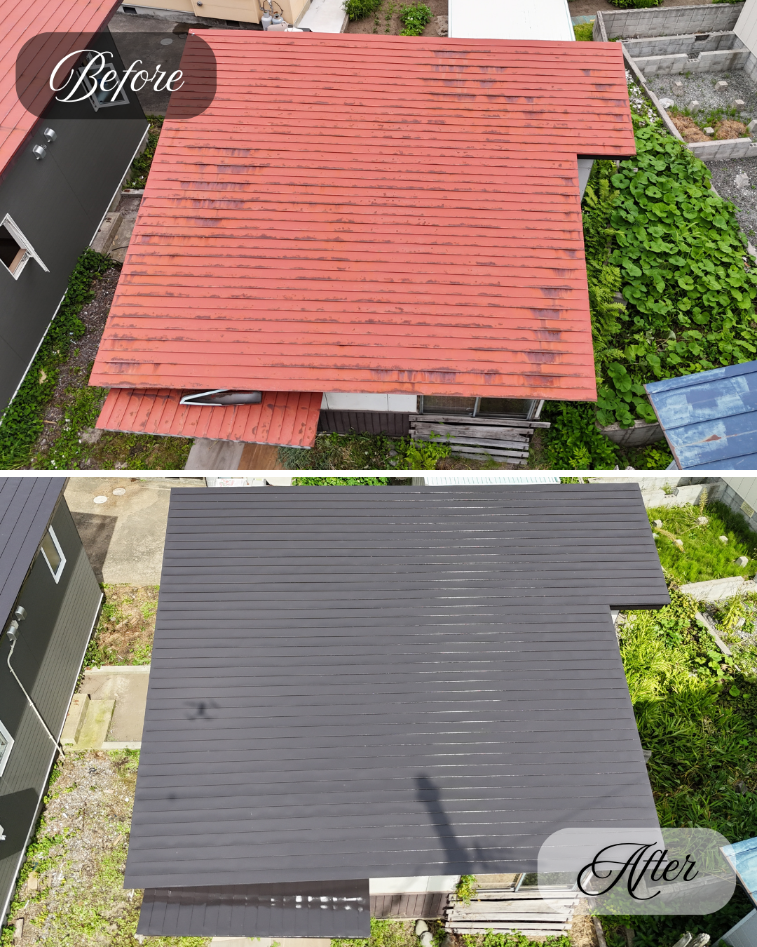 錆が発生し、艶退けも進んで傷んでいた屋根がきれいによみがえりました。