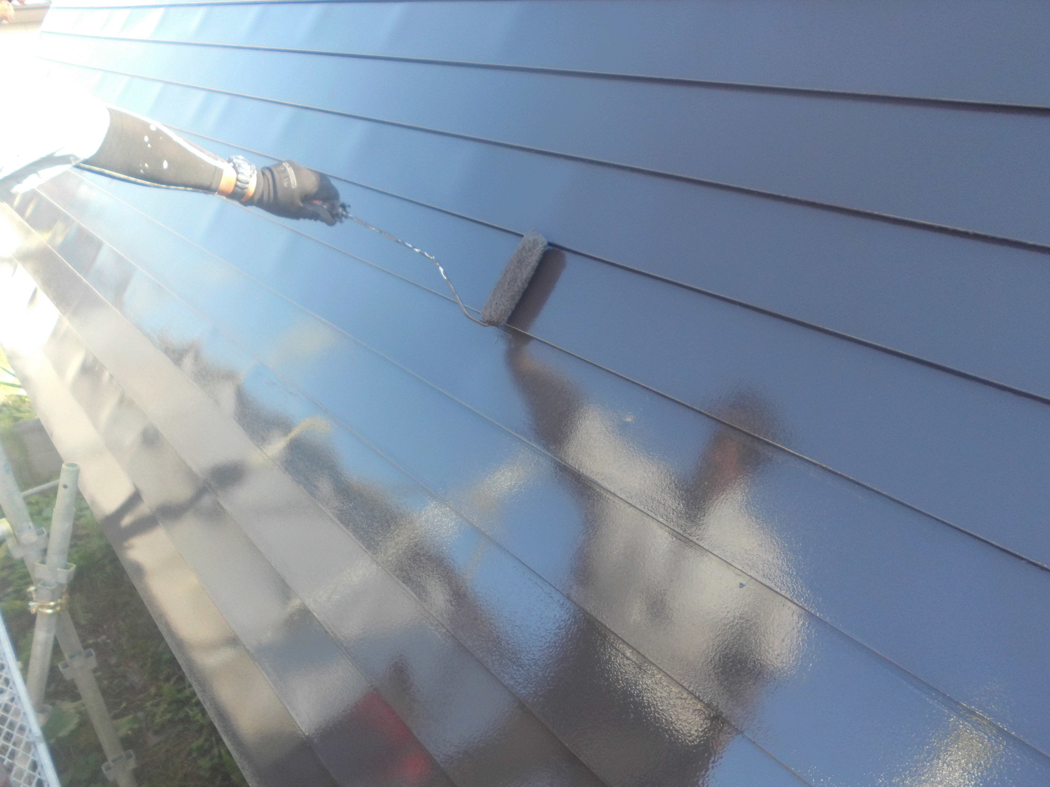 下塗同様、刷毛で細かい部分を「ダメ込み」してからローラーできれいに塗り進めていきます。