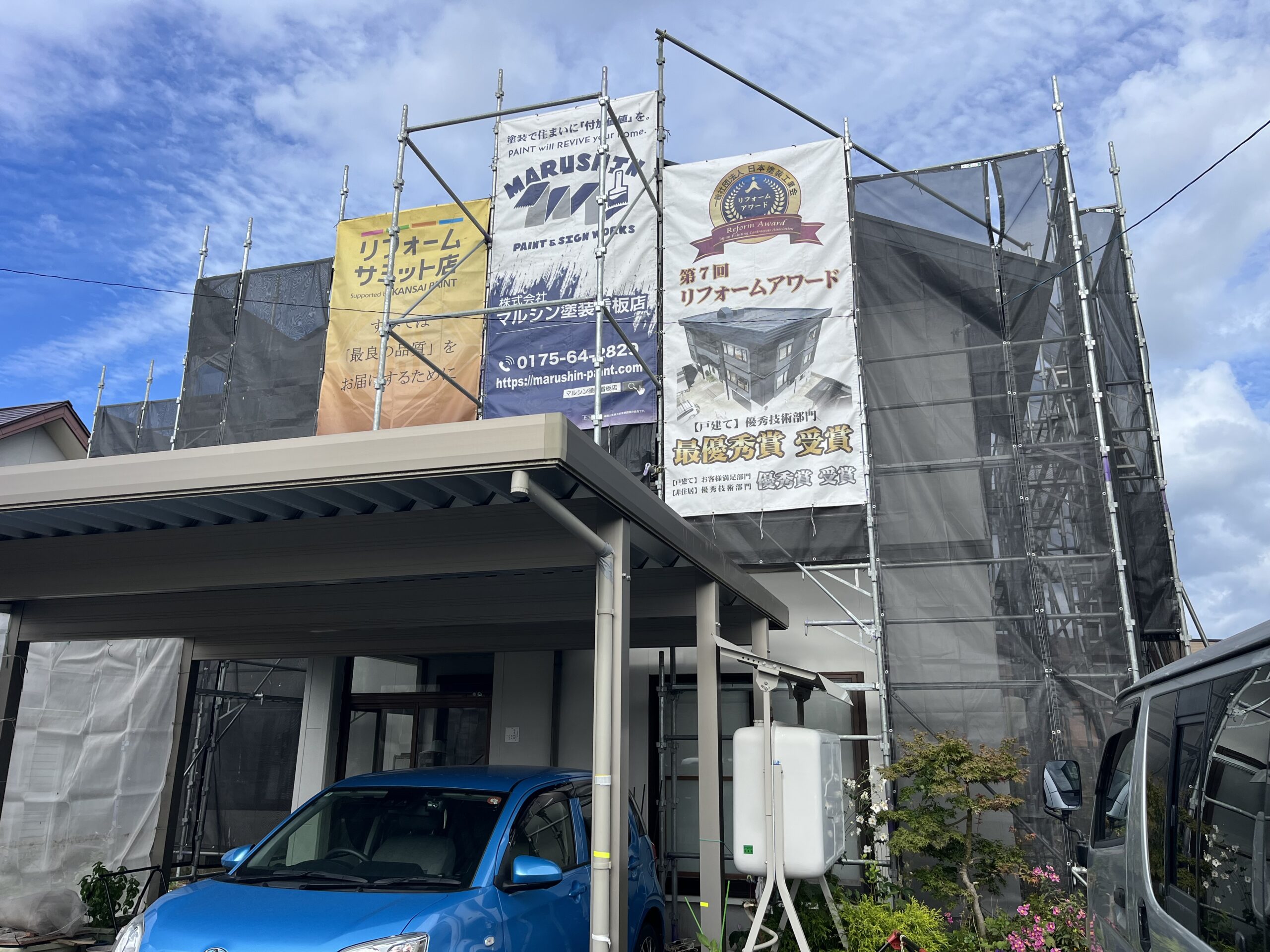 令和7年10月中旬、青森県上北郡野辺地町で「屋根・軒天井・帯」の塗替工事を着工致しました。