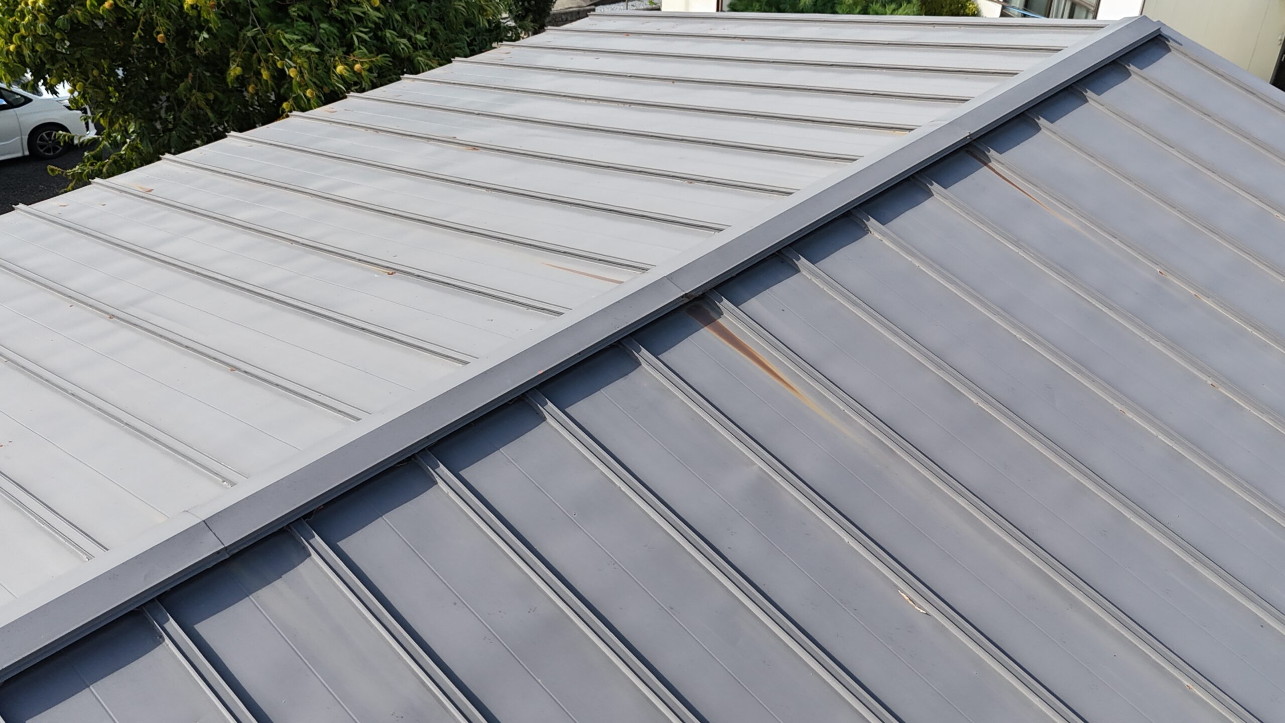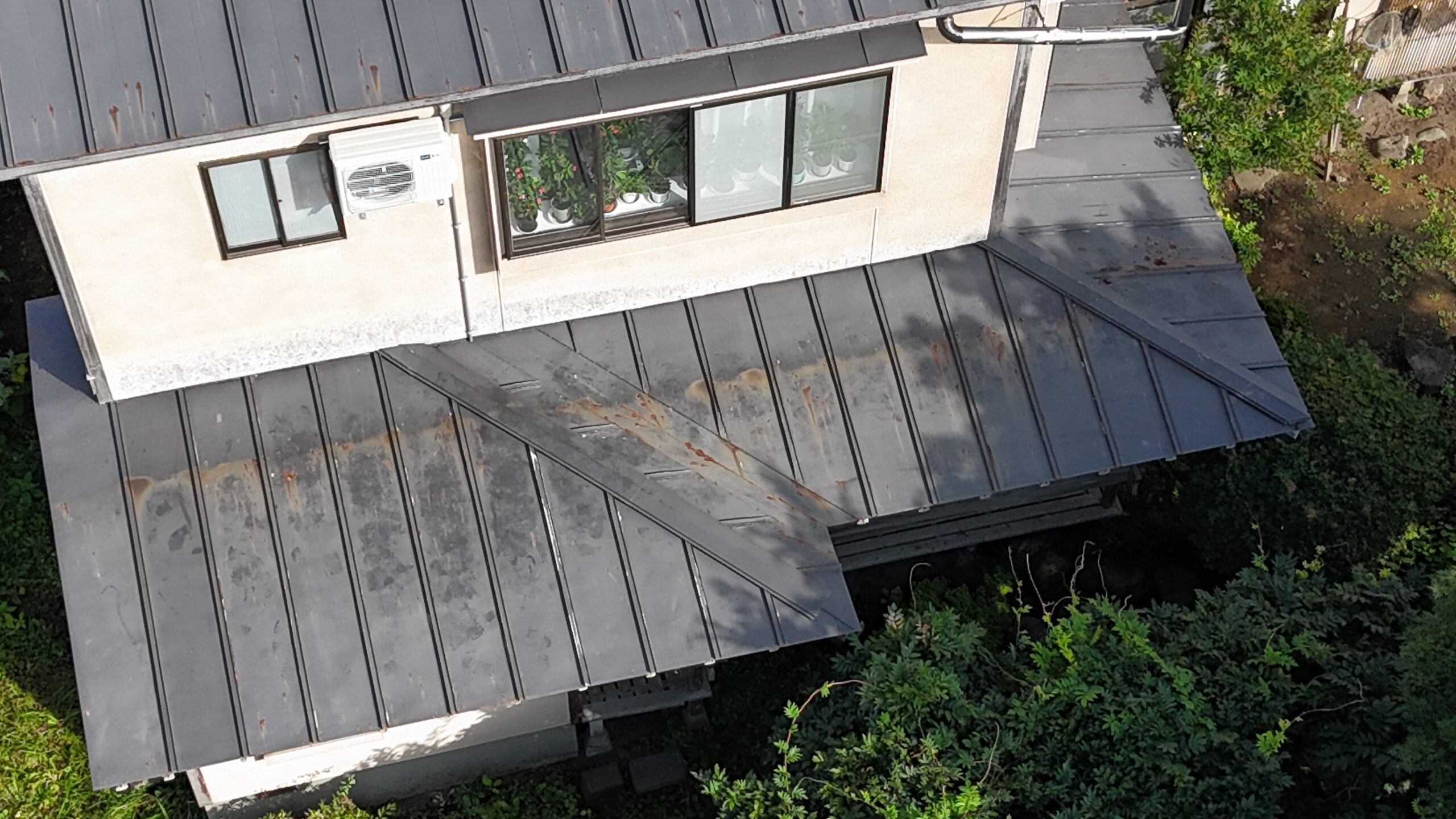 ・下屋根、水下部分にサビの発生、既設塗膜のハガレ