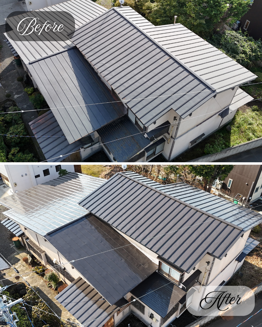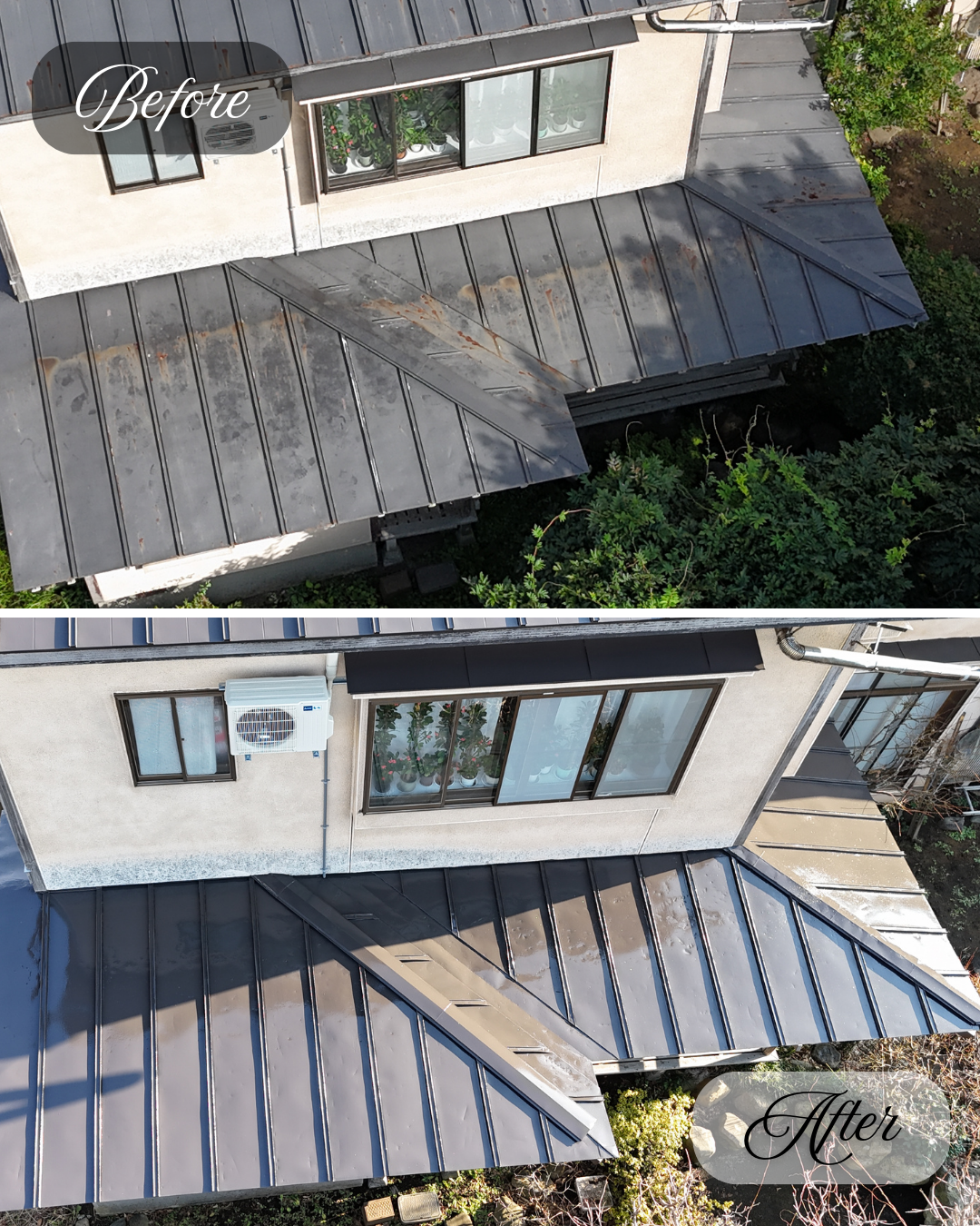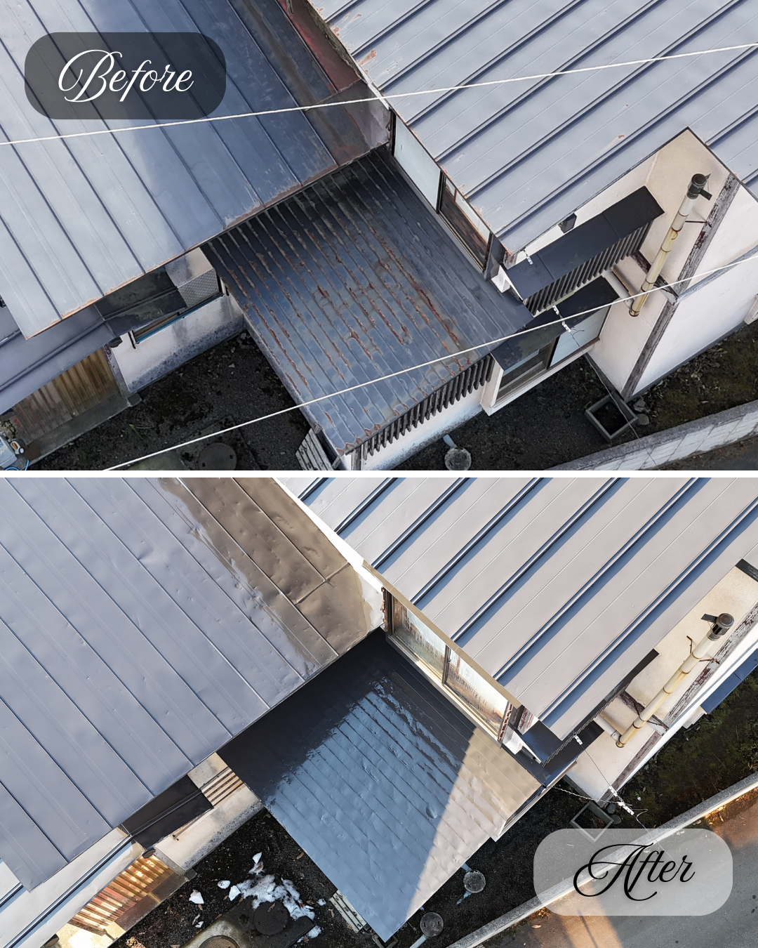 サビが発生して、艶も退いていた屋根がきれいによみがえりました。