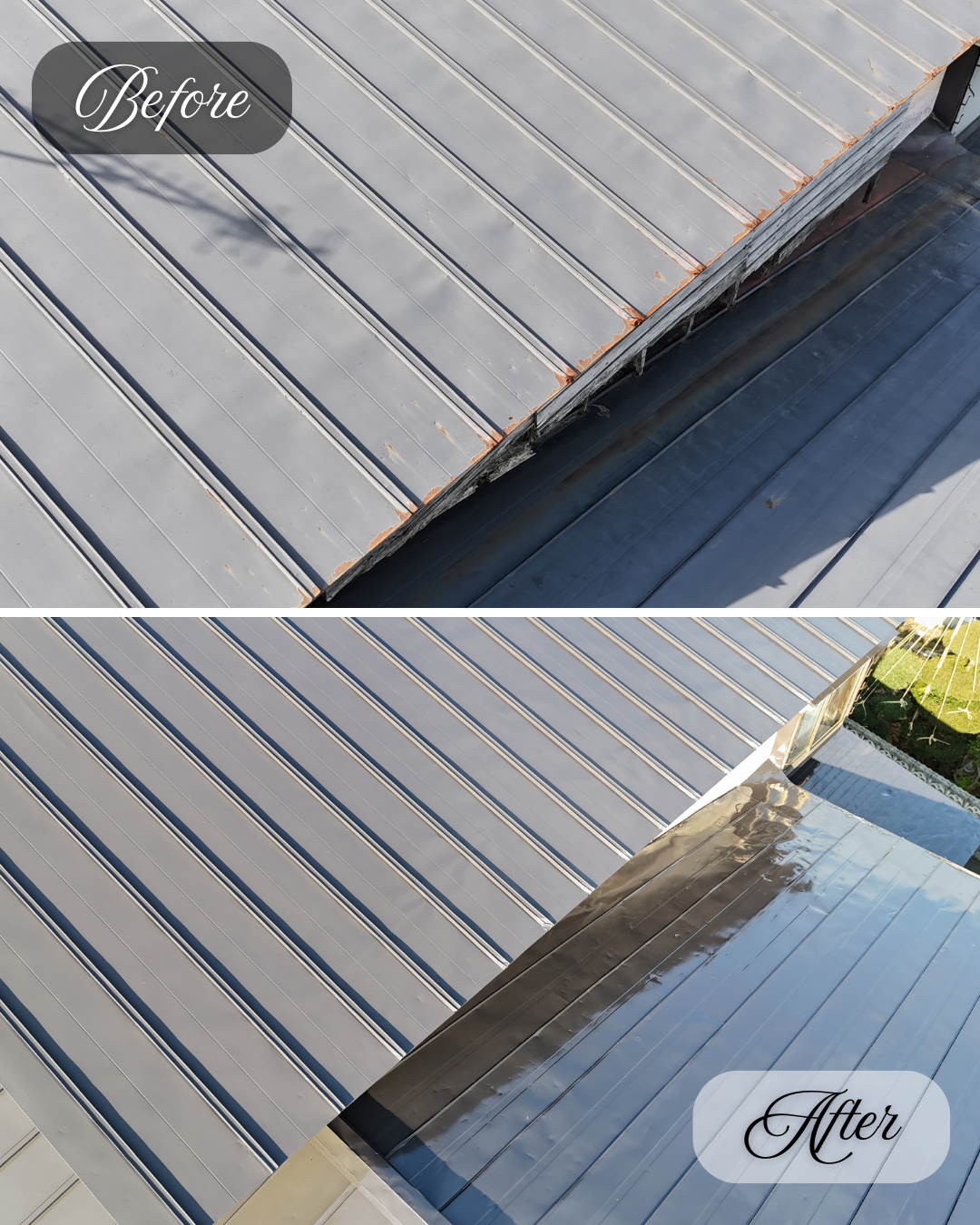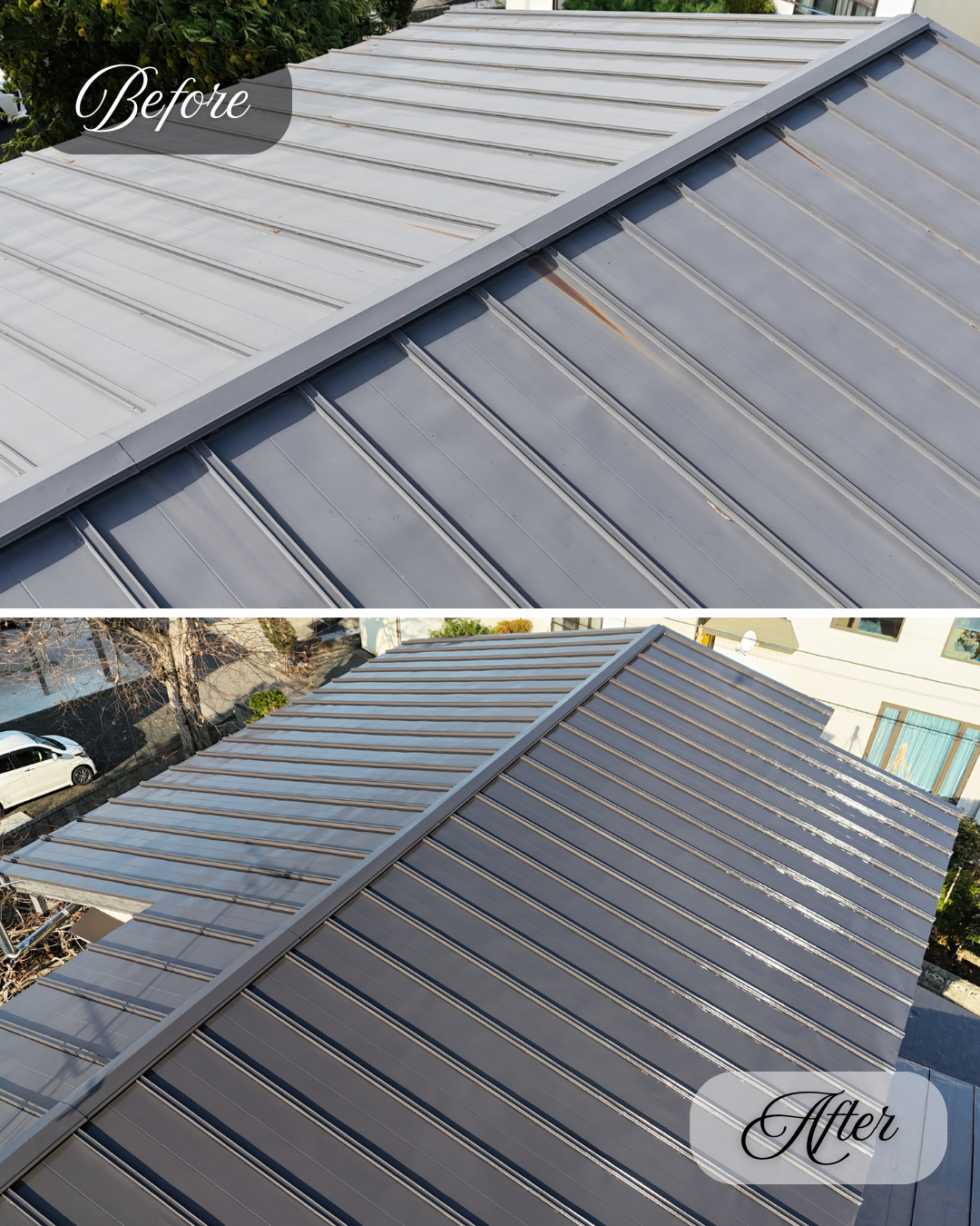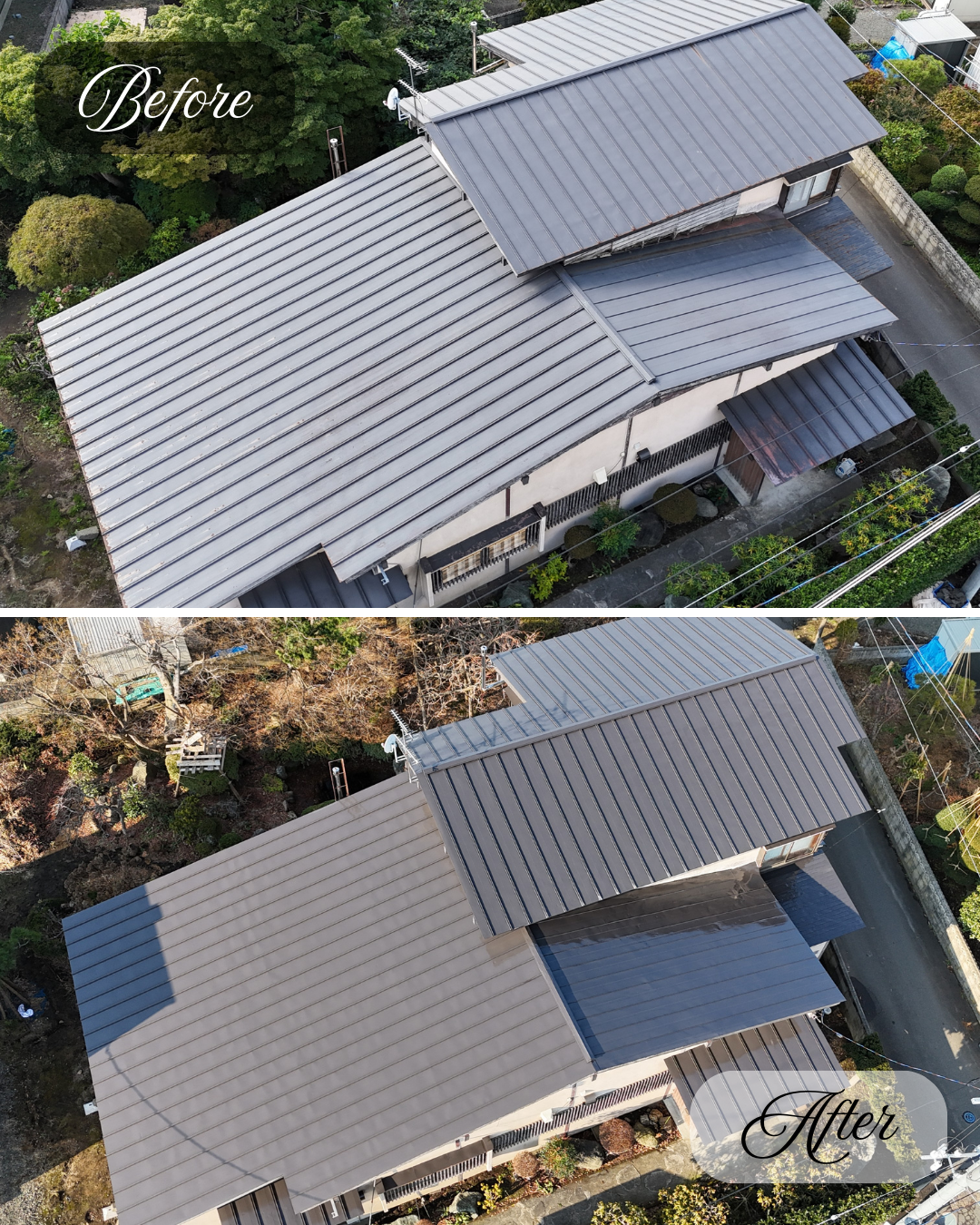 サビが発生して、艶も退いていた屋根がきれいによみがえりました。