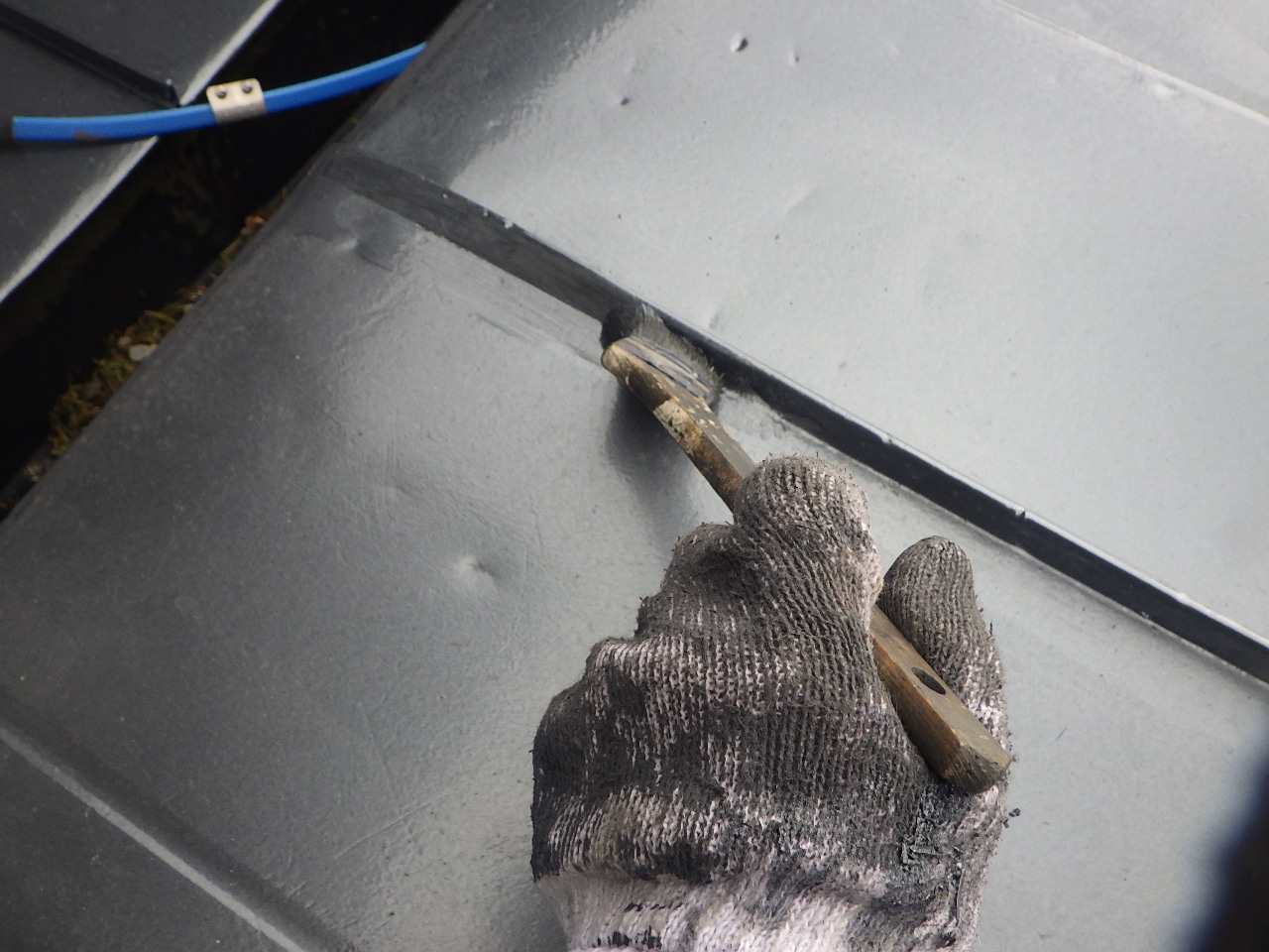 下塗同様、細かい部分は刷毛で「ダメ込み」を行ってから、ローラーで仕上げていきます。