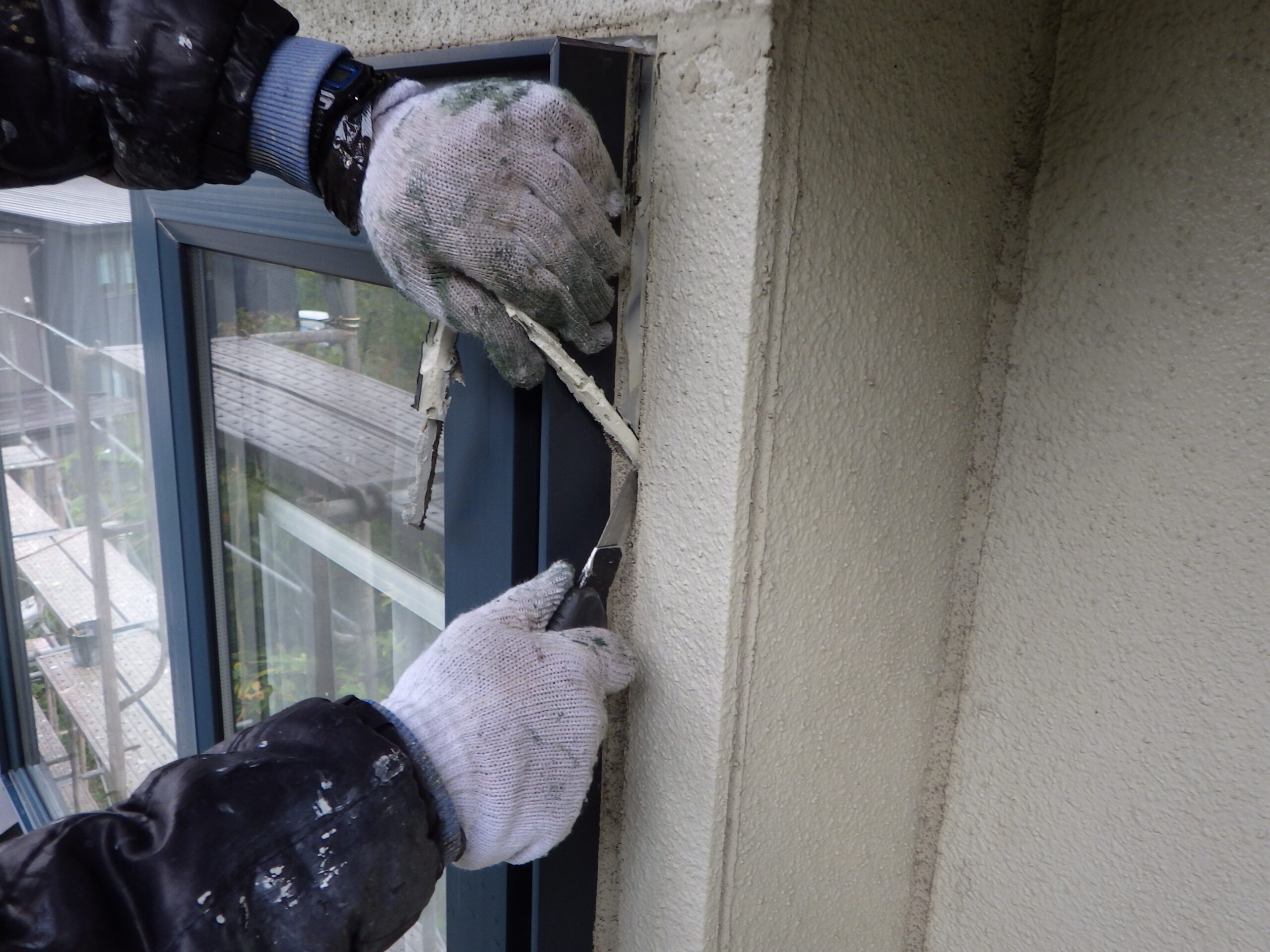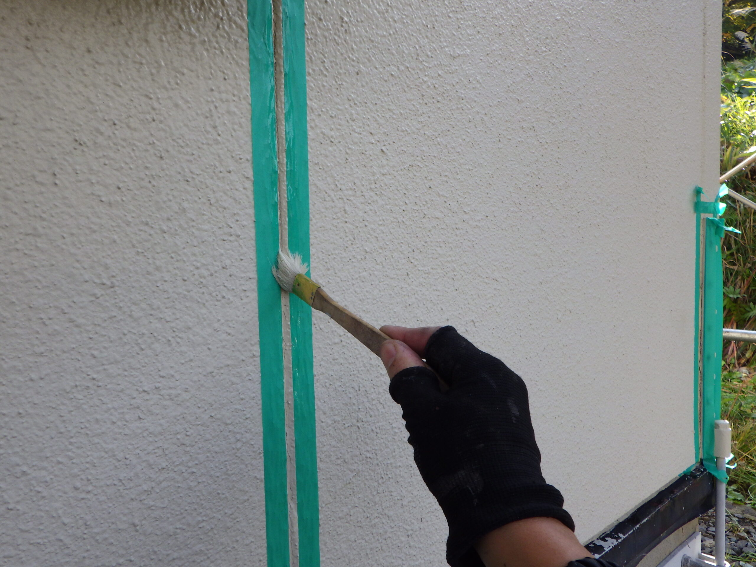 既設のシーリングを撤去してから、プライマーを塗布して新しいシーリングを打設していきます。