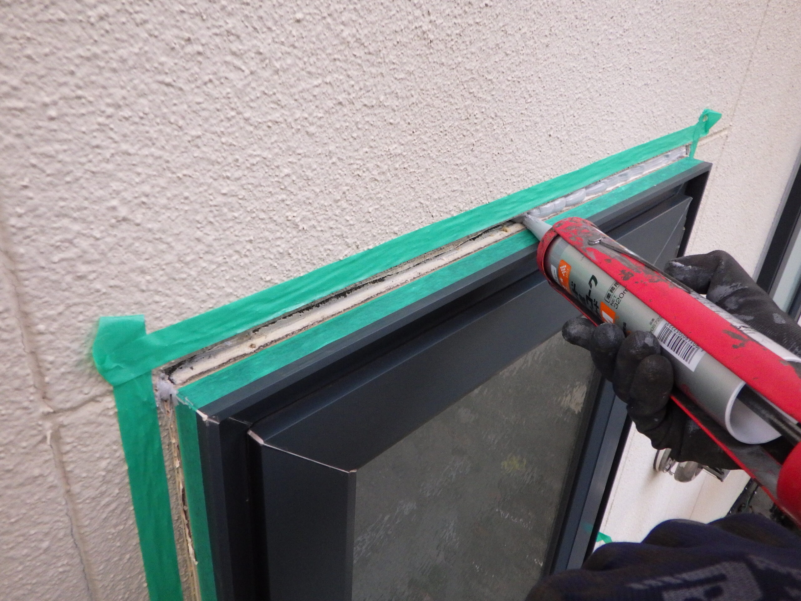 大工工事で貼り替えた部分も、しっかりとシーリングしていきます。
