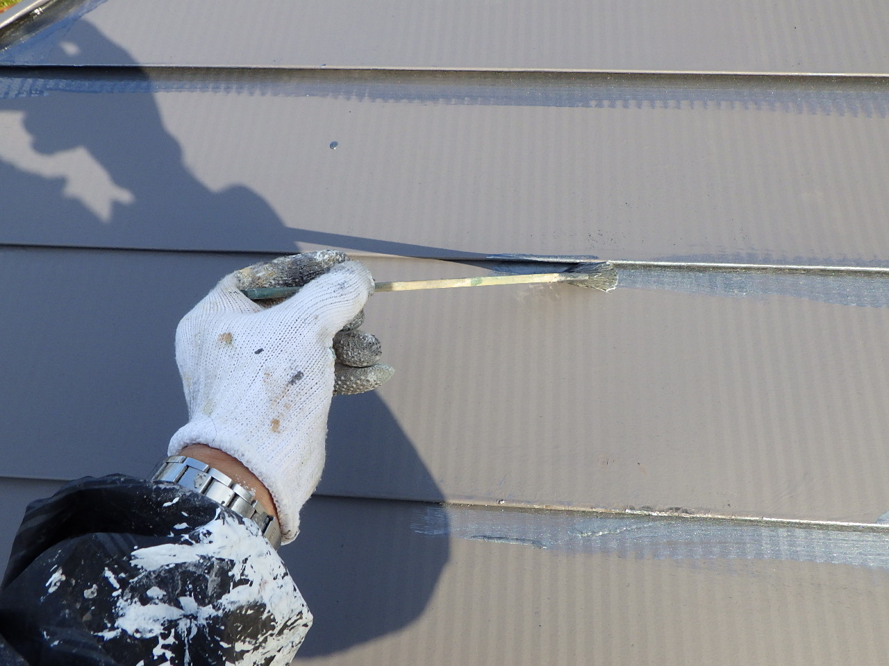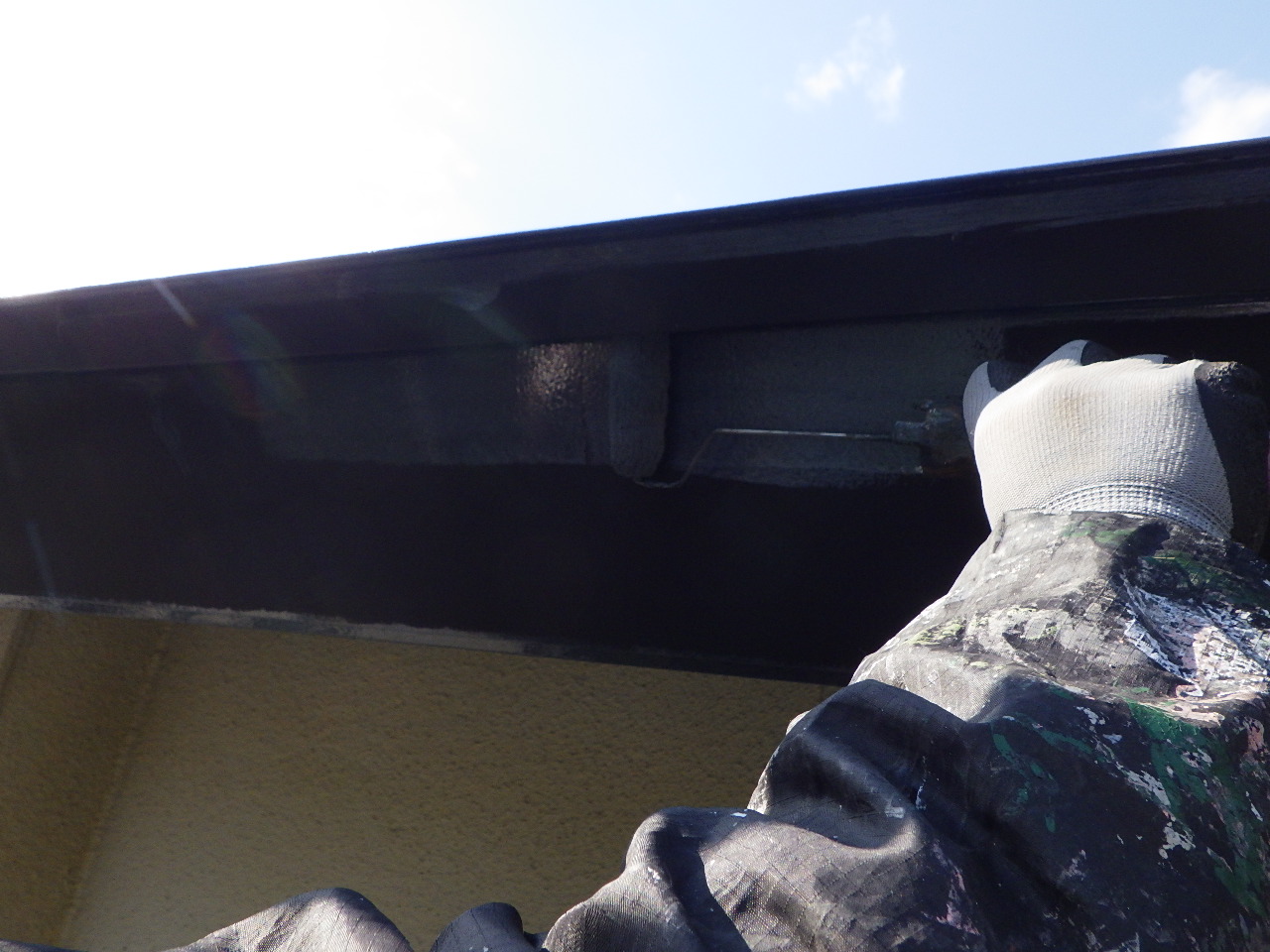 下塗同様、細かい部分は刷毛で「ダメ込み」を行ってから、ローラーで仕上げていきます。