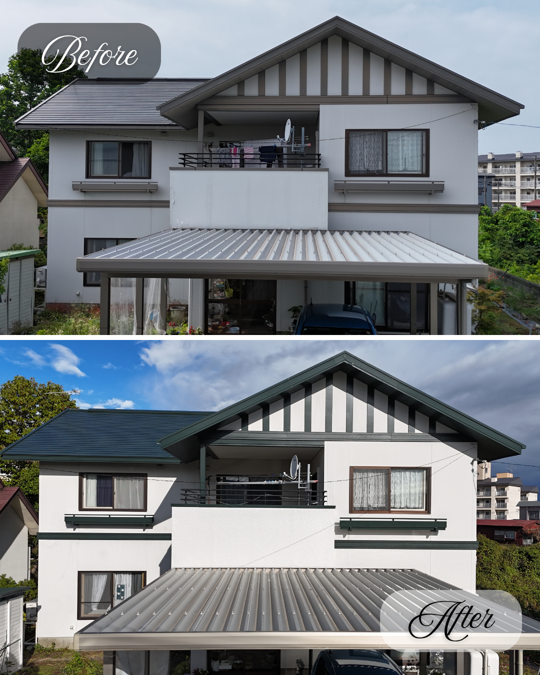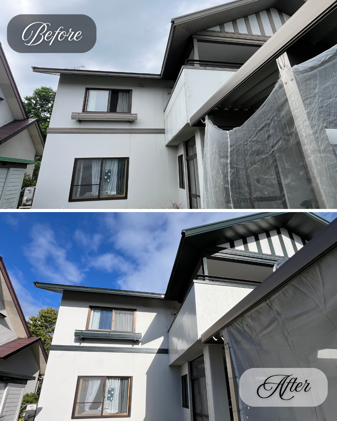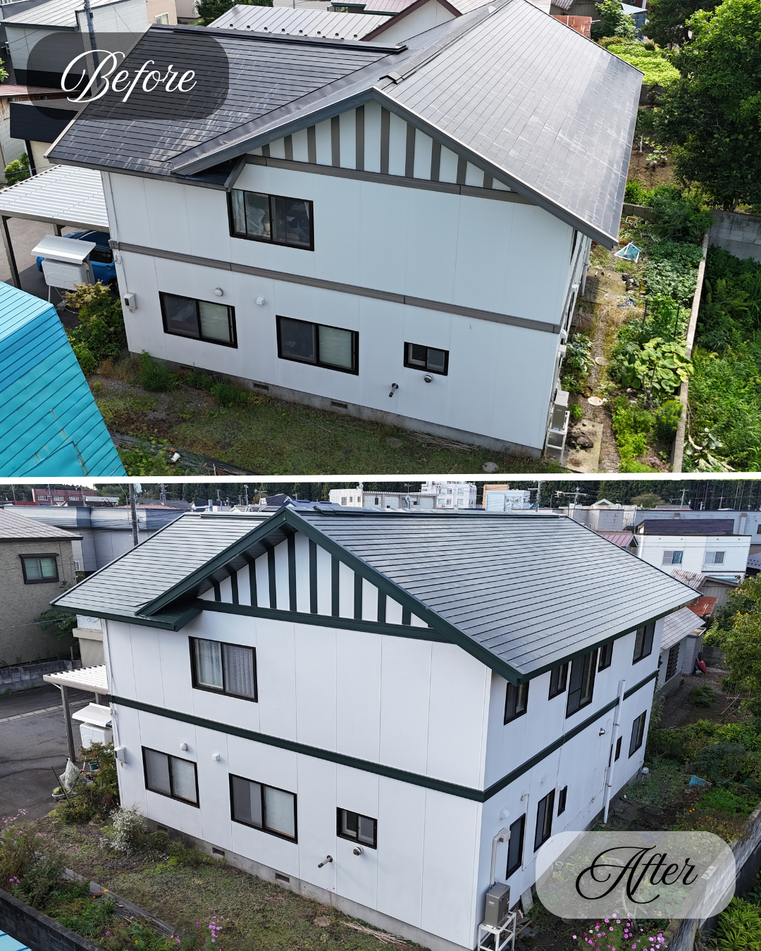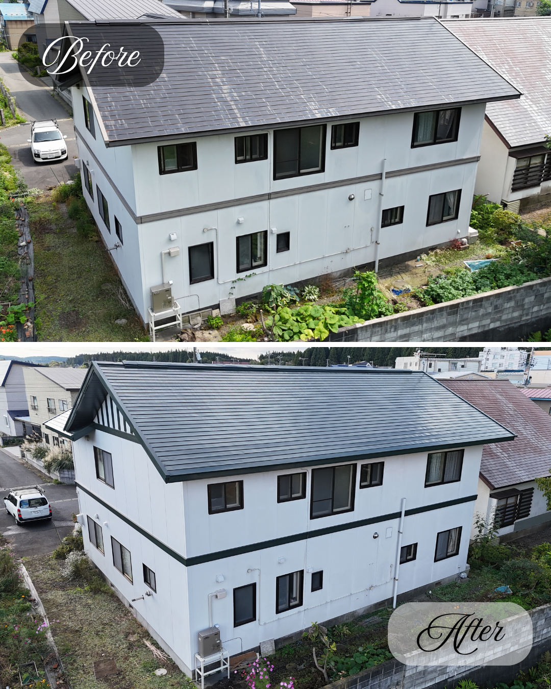 令和7年10月下旬、青森県上北郡野辺地町で「屋根・軒天井・帯塗替工事」が完工致しました。