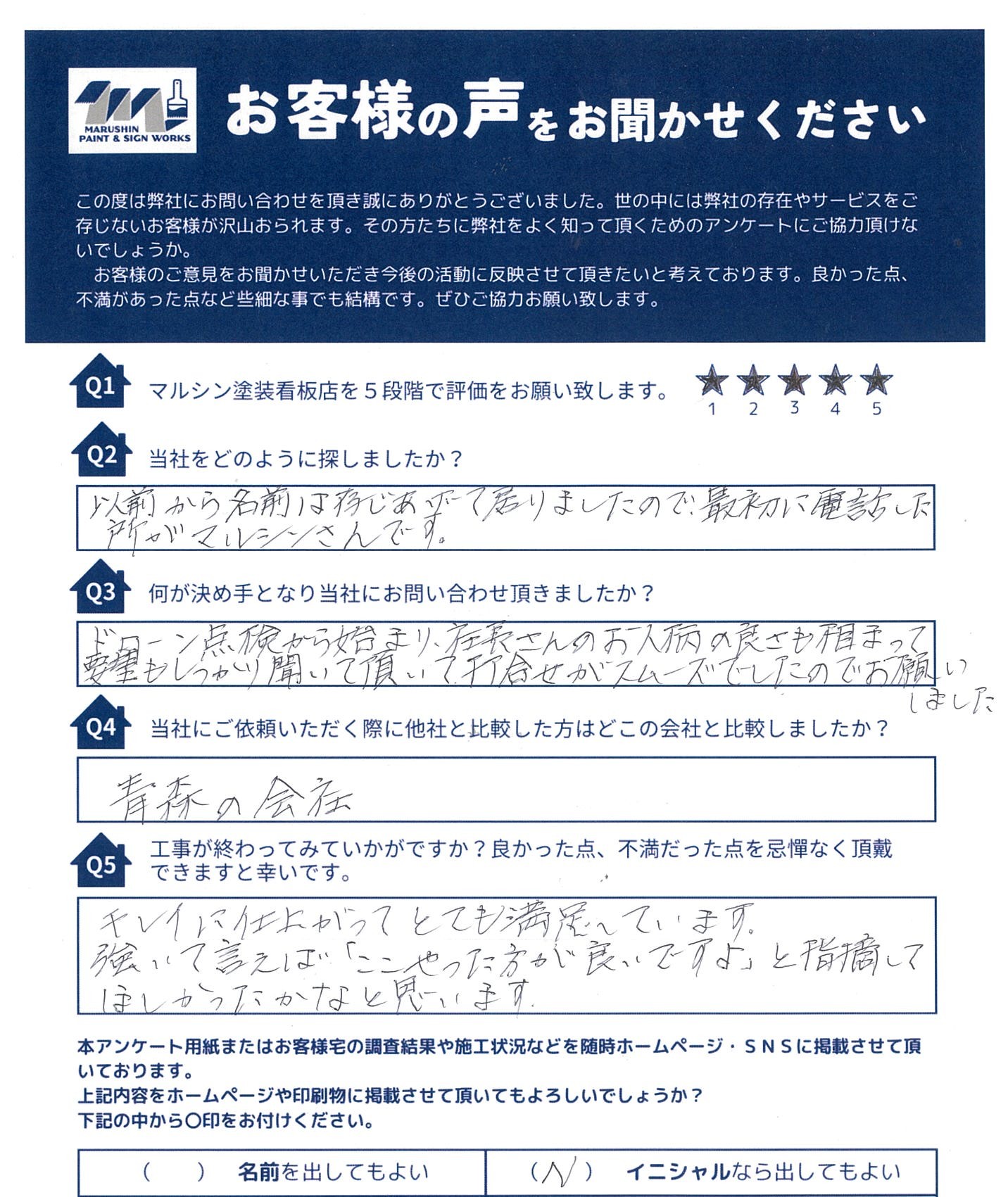 お施主様から頂いたアンケートの回答がこちらです。