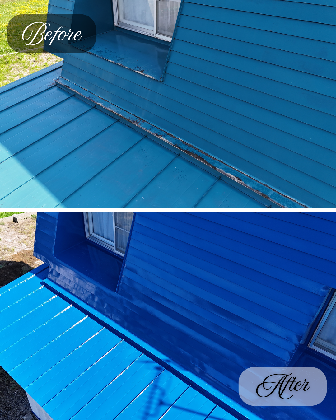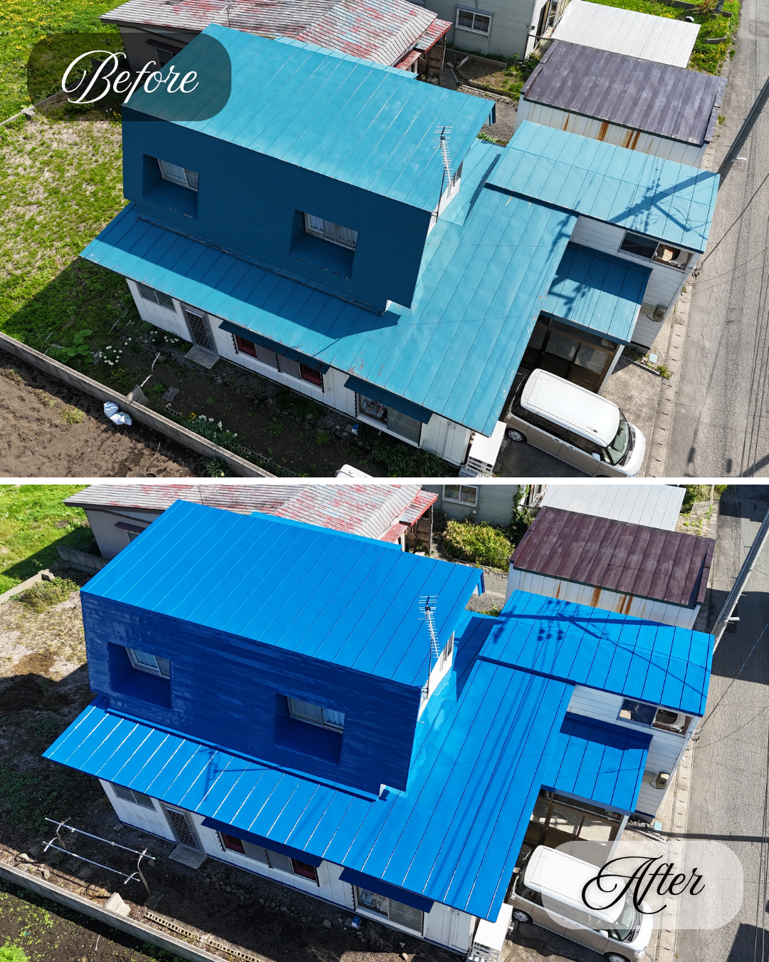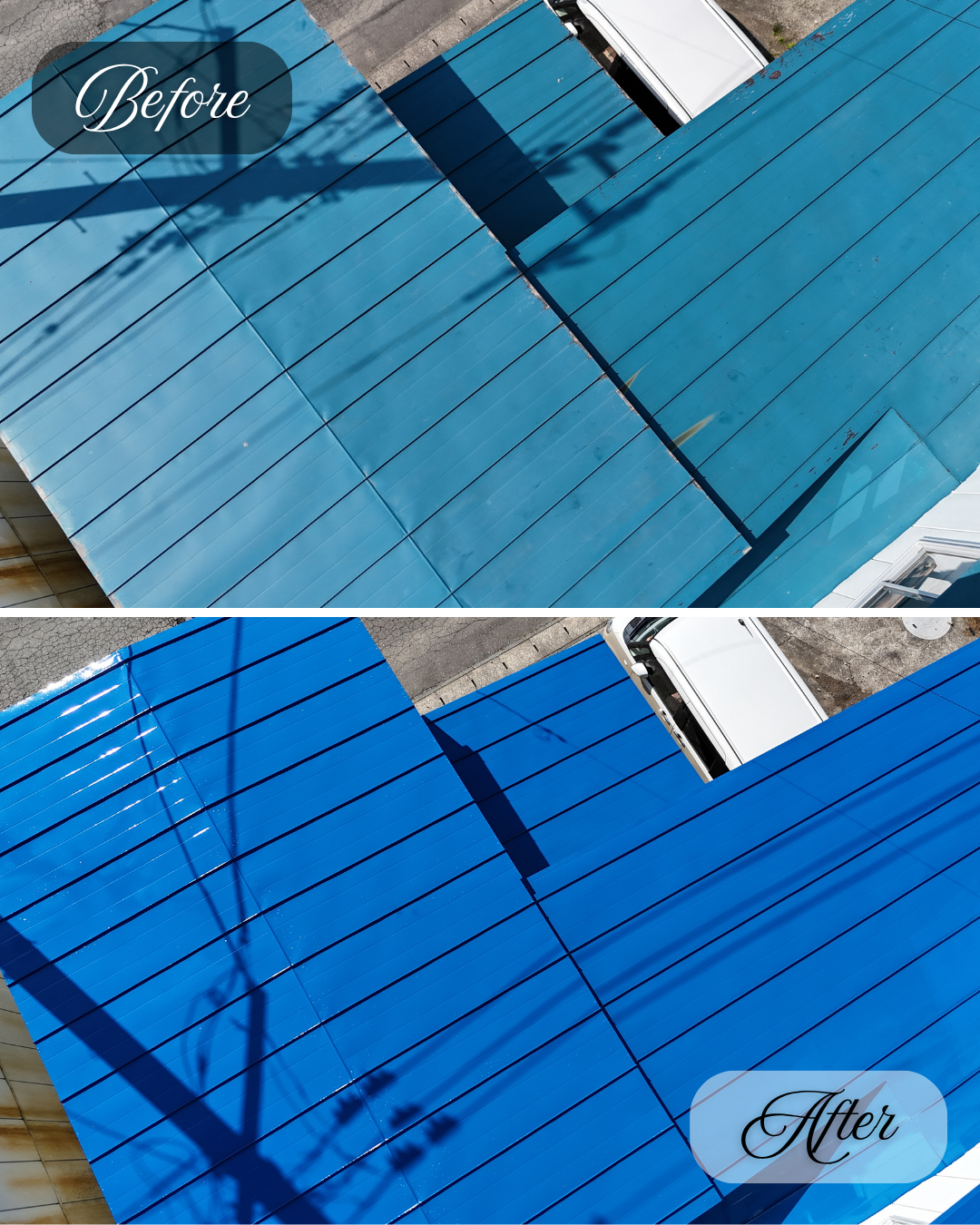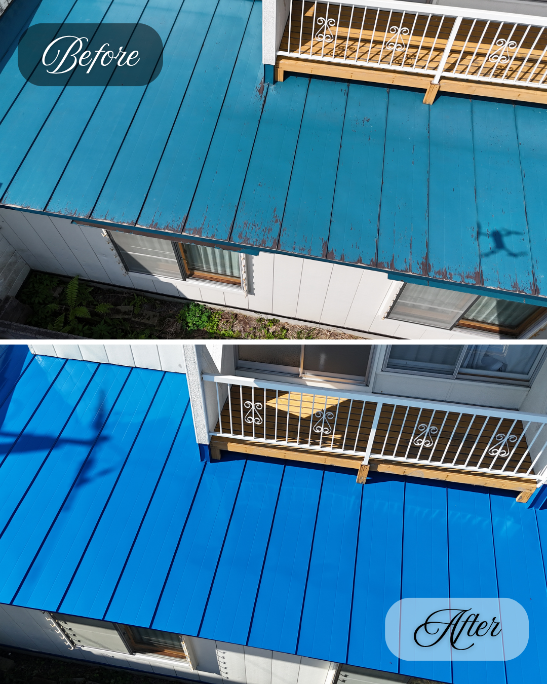 旧塗膜のハガレが各所見受けられていた屋根が、きれいによみがえりました。
