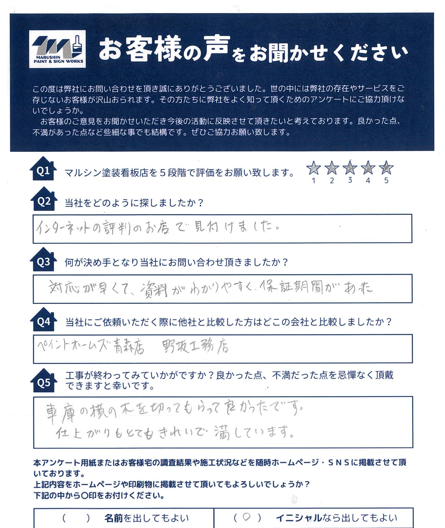 数ある施工店の中から、当社をお選び頂き誠にありがとうございました。