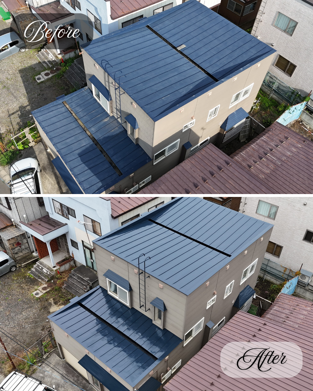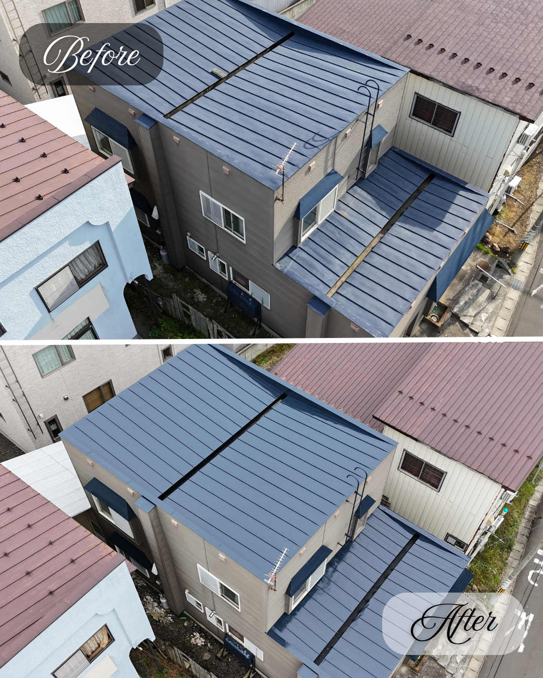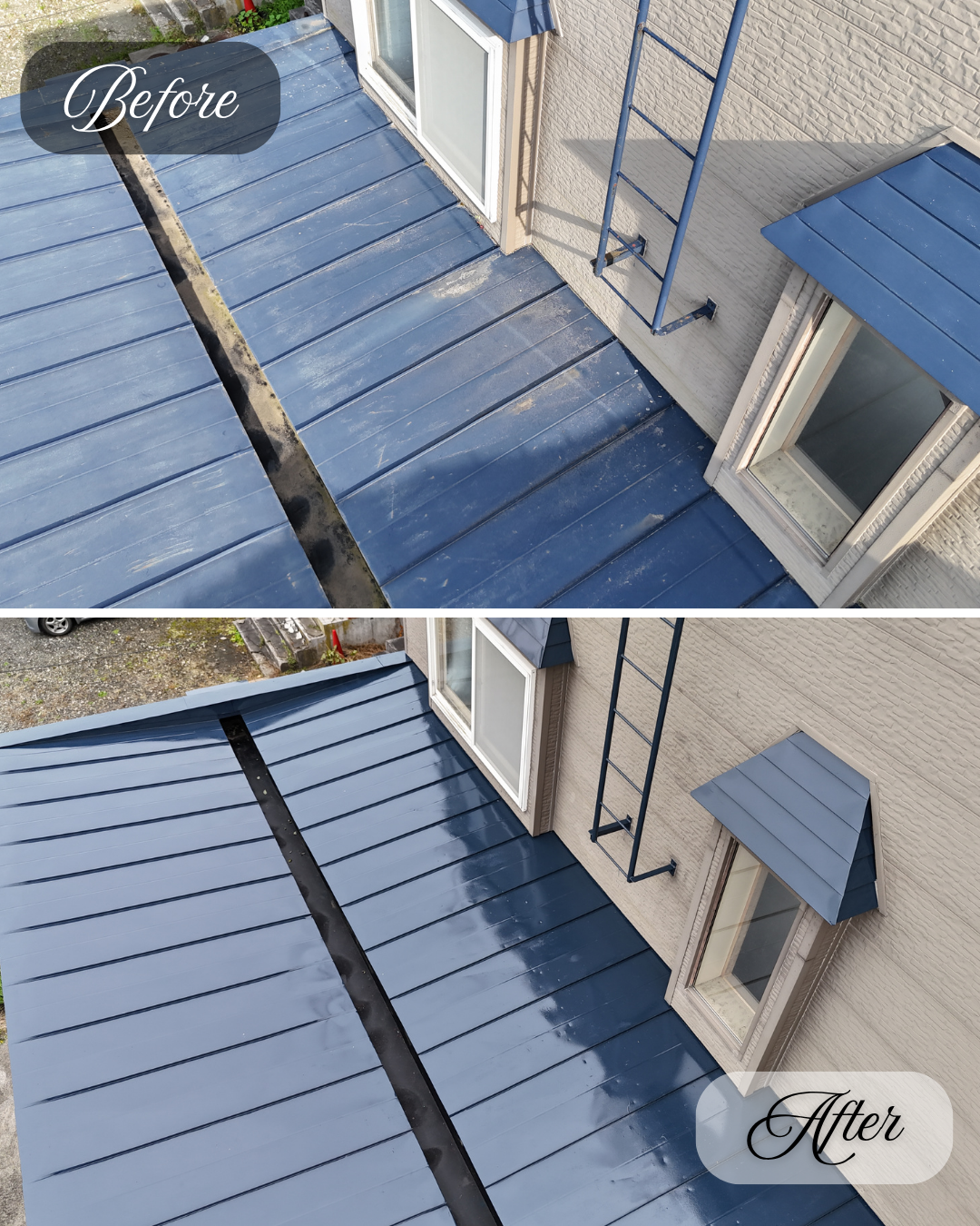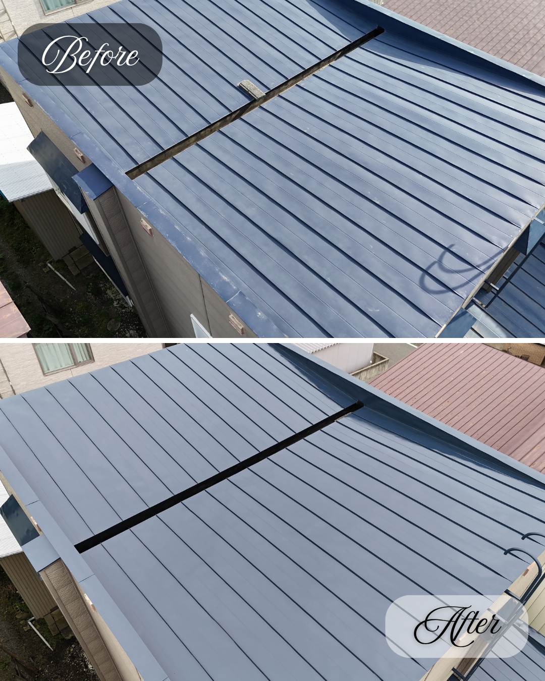 塗膜の劣化や錆の発生が見受けられていた屋根が、きれいによみがえりました。
