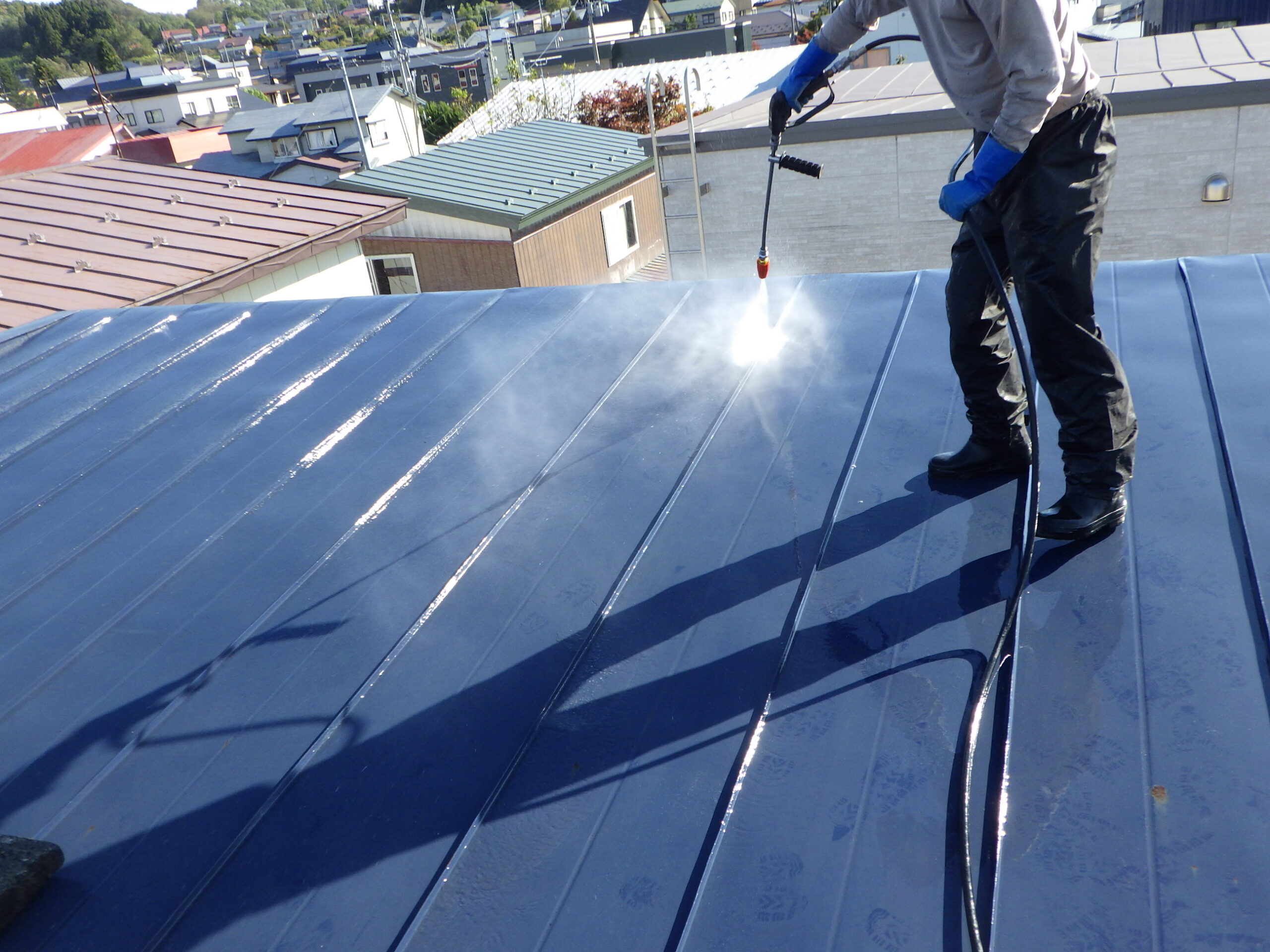 まずは「高圧洗浄」で経年の汚れや埃などをきれいに洗い流していきます。