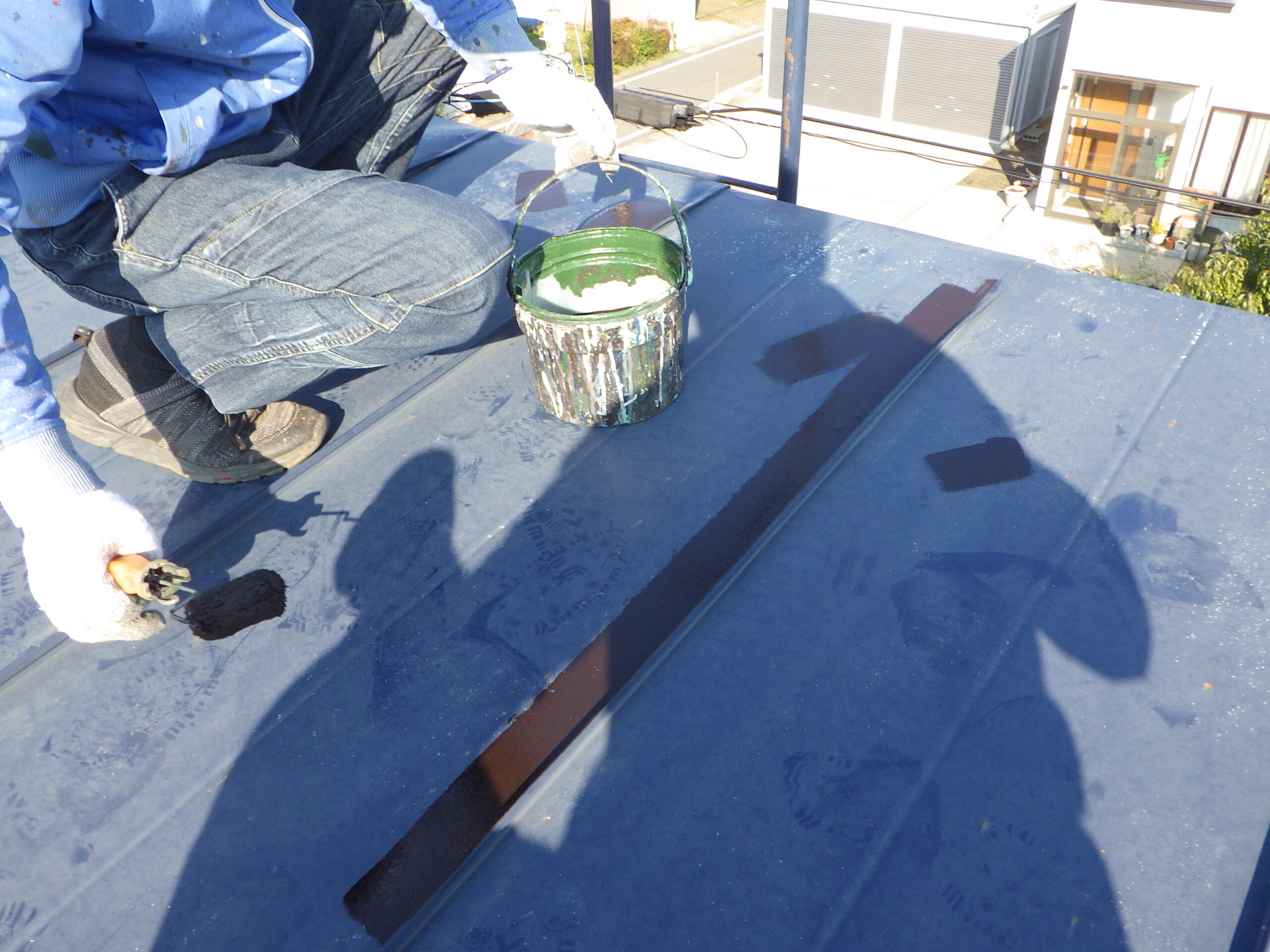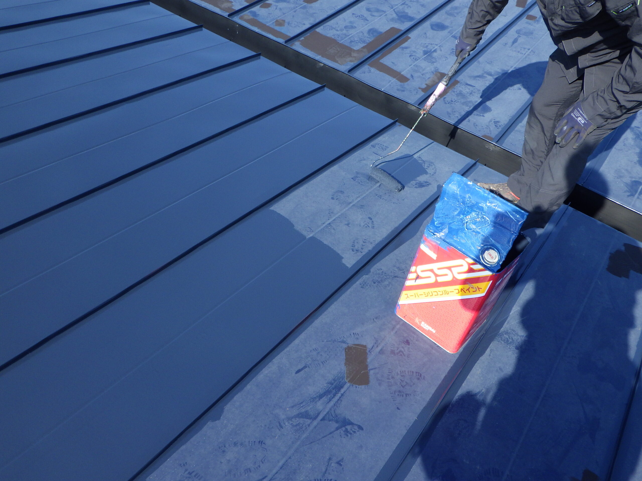 細かい部分は刷毛で「ダメ込み」を行ってから、ローラーできれいに塗り進めていきます。