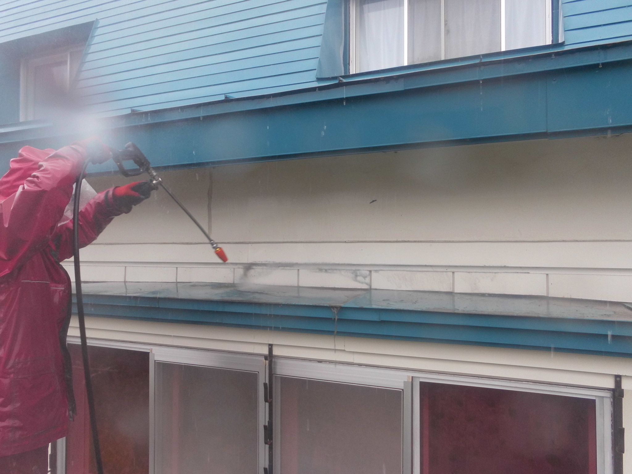 まずは塗装工事の基本作業、「高圧洗浄」から作業を進めていきます。
