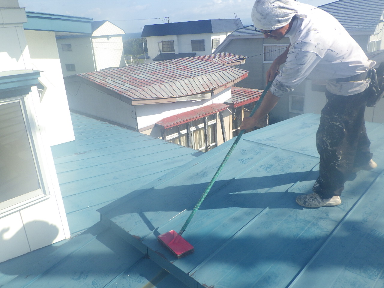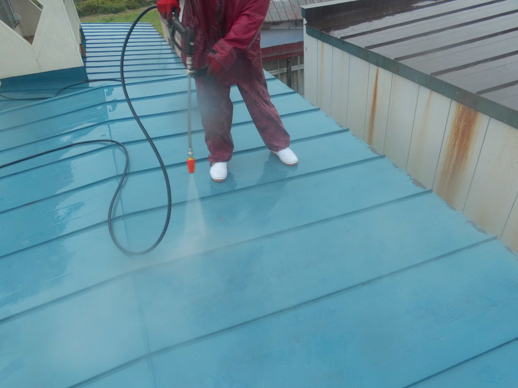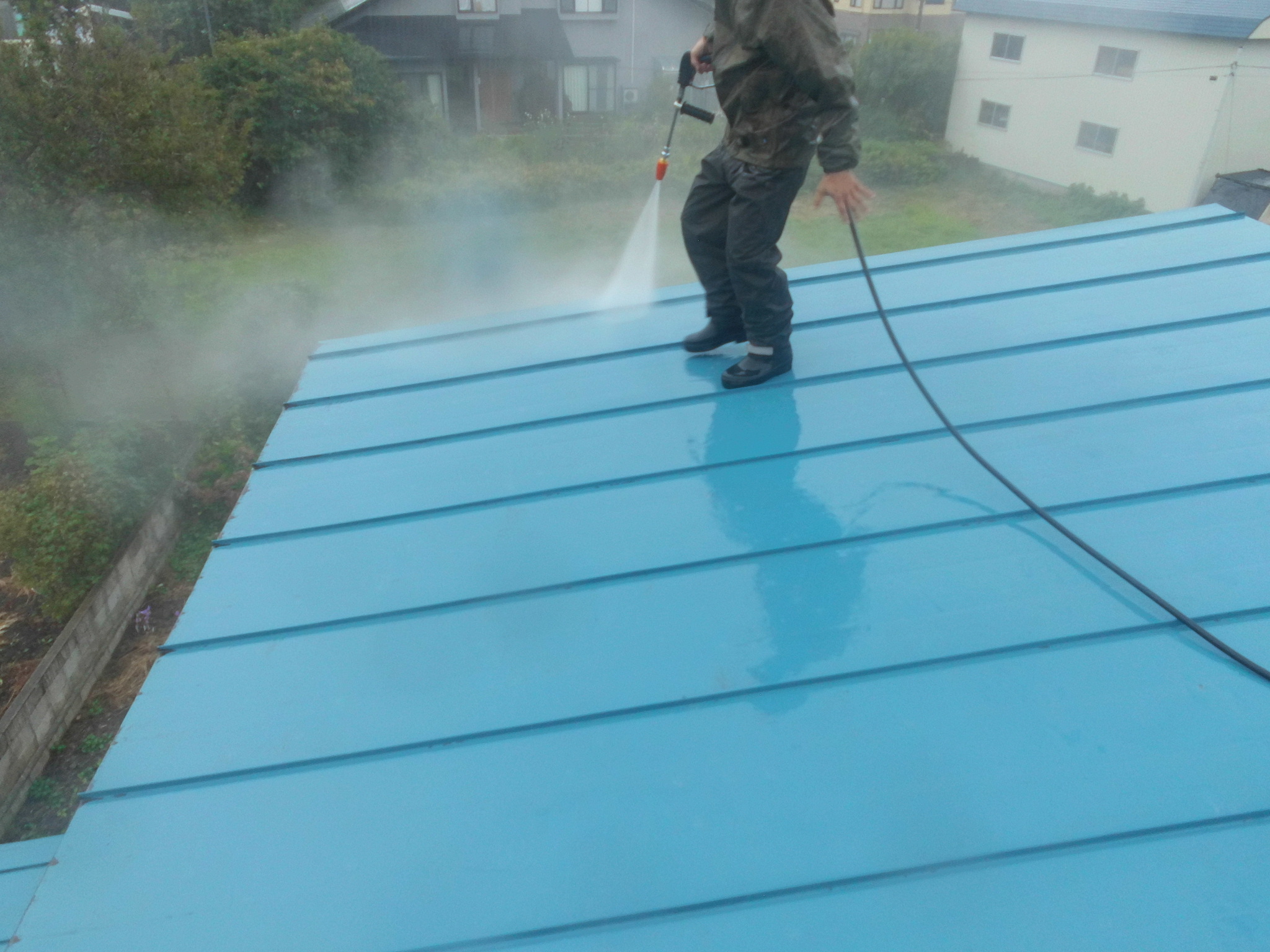 青森県上北郡野辺地町の「屋根塗替工事」で高圧洗浄・下地処理から作業着工中です!