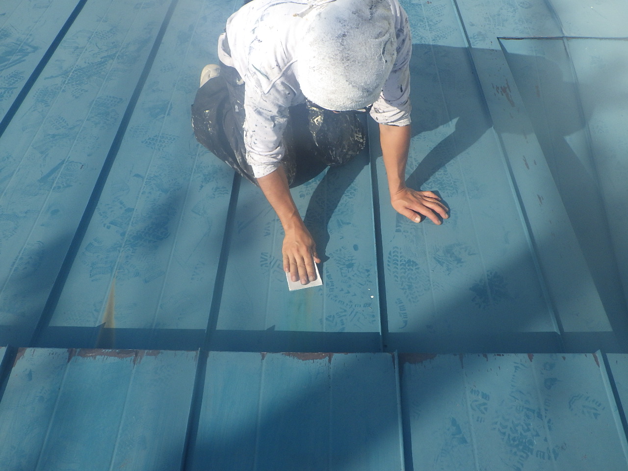 既存塗膜は「目粗し」を行い、錆が発生している部分は「ケレン」作業で下地を形成します。