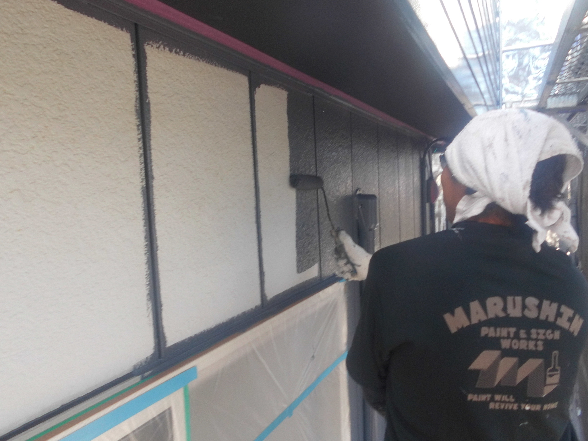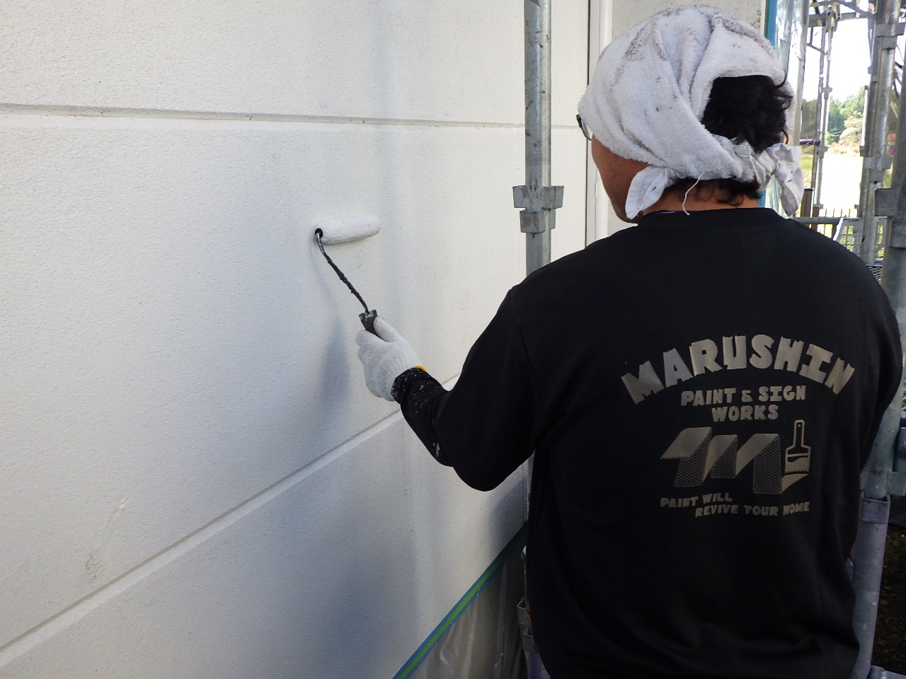 軒天井塗装完了後、「外壁下塗」を進めていきます。