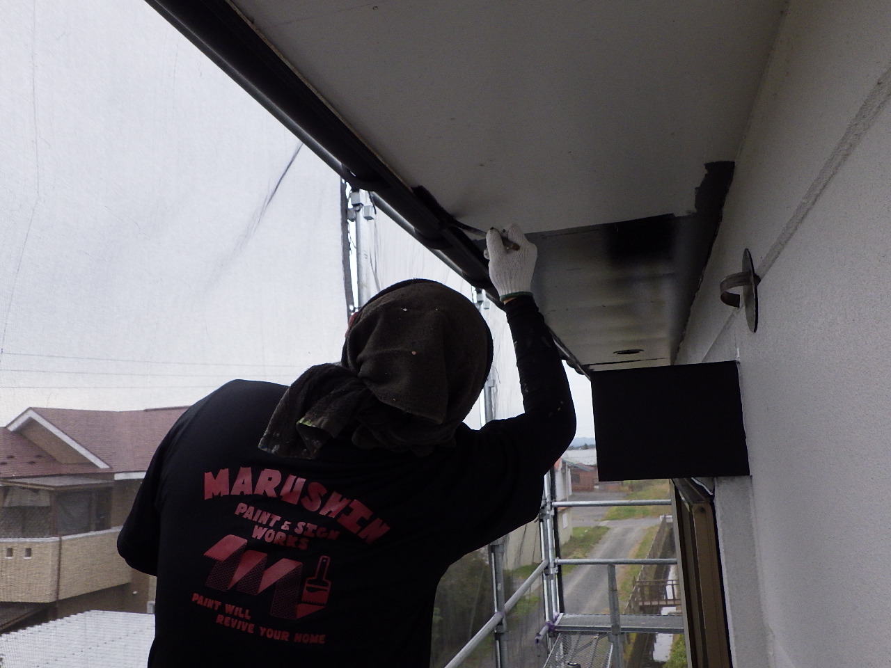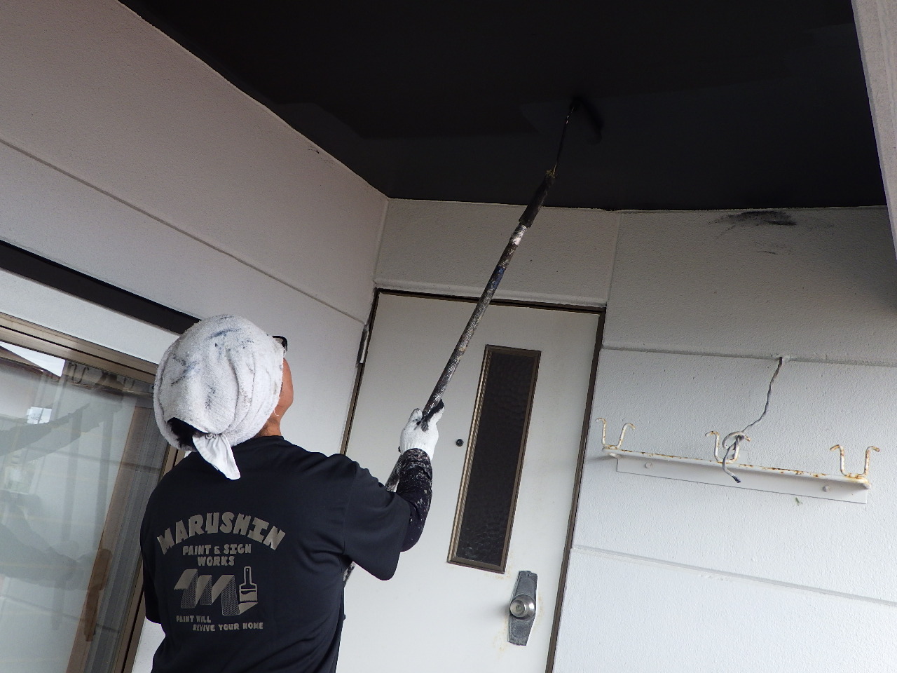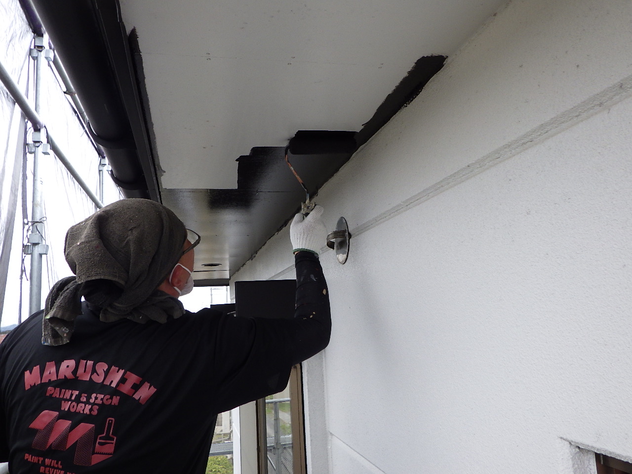 シーリング施工完了後、「軒天井塗装」を行っていきます。