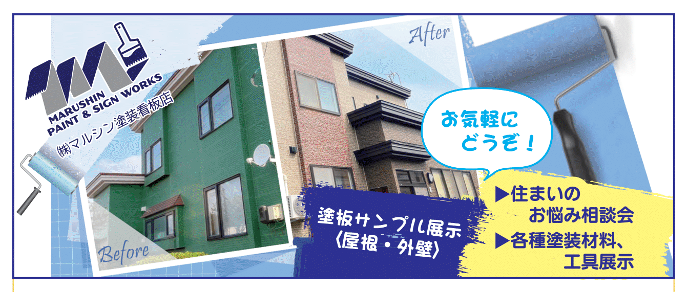 当社も『住まいのお悩み相談会』や『最新塗料のサンプル展示』などブースを構えてお待ちしております。