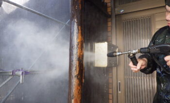 青森県十和田市の「全面改装工事」で塗装工事の基本、「高圧洗浄」から作業着工中です!